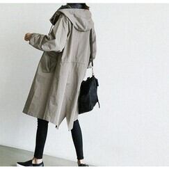 肌寒い時に大活躍するフード付きのロング丈ウインドブレーカーです。