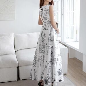 【送料無料】 ワンピース デート フレアワンピース ワンピドレス ロング ロング丈 マキシ マキシ丈 9分丈 アンクル丈 袖なし ノースリーブ ボートネック 襟なし ストレート ワイド ファスナー 大人可愛い きれいめ 大人 上品 おしゃれ お洒落 大人女子 モード系 エレガント モダン フォーマル 柄 プリント 春 夏 誕生日 謝恩会 二次会 10代 20代 30代 レディース 女性用 OL 学生 デート お出かけ 女子会 パーティー レストラン S M L XL ホワイト 白