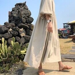 【送料無料】 ランタンスリーブ Vネック ロング ワンピース フレアワンピース マキシ丈 7分袖 ボリューム袖 かわいい 大人可愛い きれいめ シンプル カジュアル 大人 上品 おしゃれ お洒落 かっこいい レトロ 大人可愛い 大人女子 ラブリー キュート ガーリー ルーズ 個性的 無地 春 夏 秋 10代 20代 30代 40代 50代 60代 レディース デート お出かけ 女子会 休日 着回し 普段使い 重ね着 韓国系 オルチャン ファッション 体系カバー ゆったり ゆる マタニティ