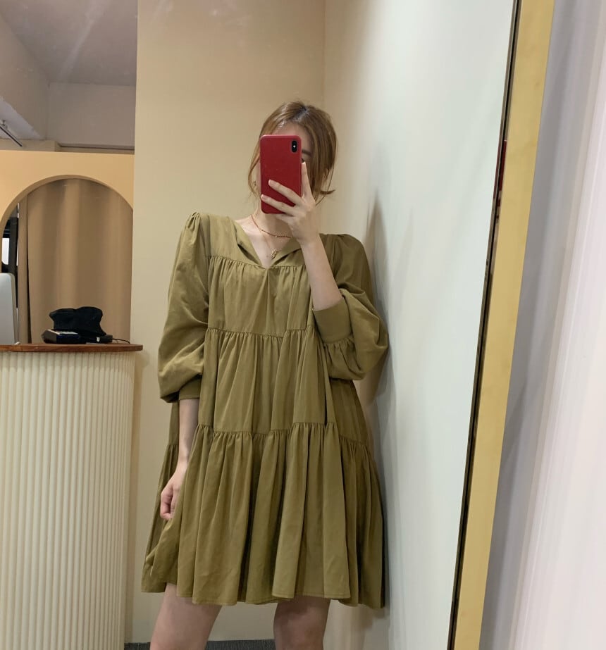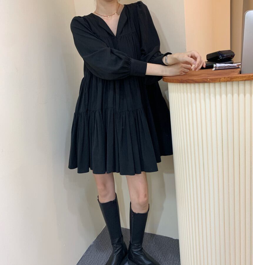 【送料無料】 トップス ワンピース プルオーバー チュニック ティアード 袖あり ボリューム袖 長袖 Vネック フレア かわいい 大人可愛い きれいめ カジュアル おしゃれ お洒落 レトロ ラブリー キュート ガーリー 主役級 存在感 無地 春 夏 10代 20代 レディース 学生 通学 デート お出かけ 公園デビュー 休日 着回し 普段使い 韓国 韓国系 オルチャン ファッション コーデ スタイル モテ トレンド 流行 ゆったり ゆる ワンサイズ フリーサイズ 色展開 白 ホワイト 黒 ブラック カーキ