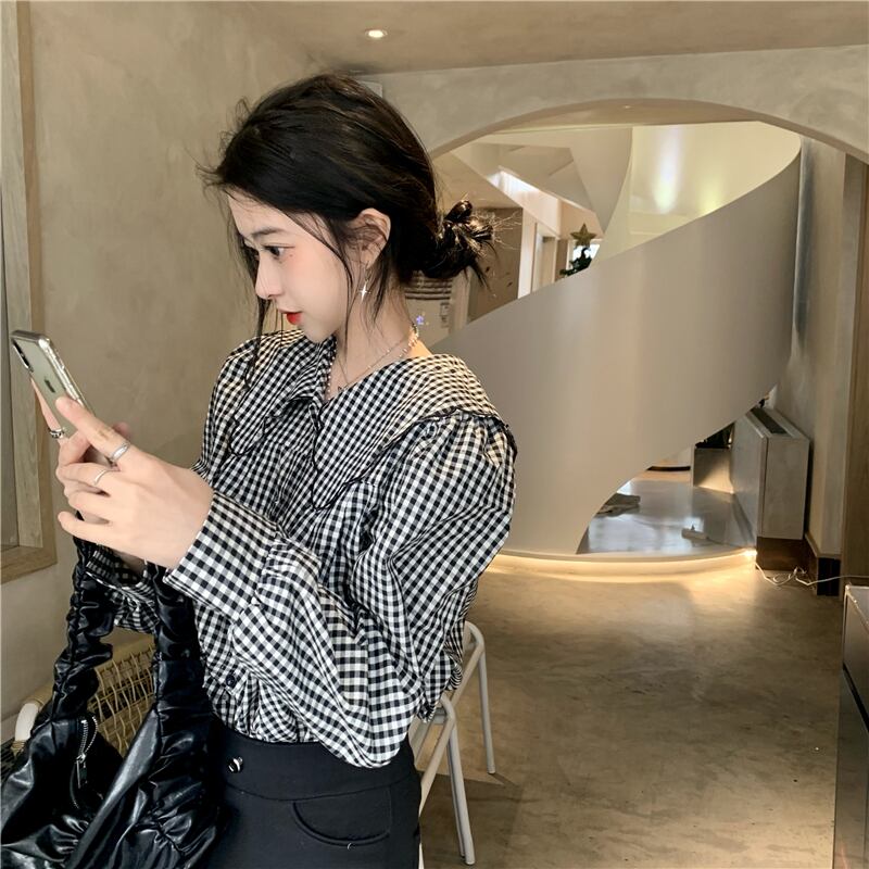 【送料無料】 トップス シャツ ブラウス タック スカラップ トリム バイカラー ギンガムチェック ミディアム丈 長袖 ラージカラー かわいい 大人可愛い きれいめ シンプル カジュアル おしゃれ お洒落 大人女子 こなれ感 ラブリー キュート 主役級 存在感 無地 夏 10代 20代 30代 レディース 学生 通学 デート お出かけ 女子会 休日 リゾート 旅行 着回し 普段使い 韓国系 オルチャン ファッション コーデ スタイル 楽ちん モテS M L XL ホワイト ブラック