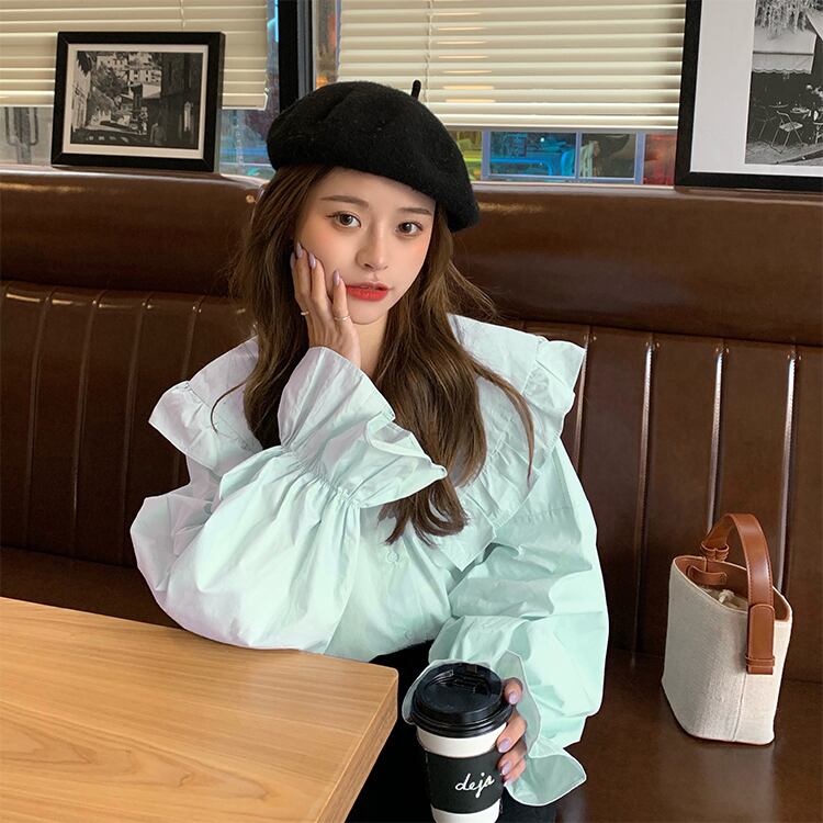 キャンディースリーブと大きめ襟が存在感抜群なシャツブラウスです。