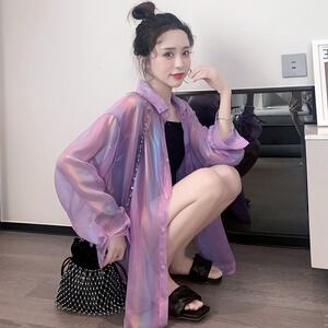 【送料無料】 シャイニー シャツ ブラウス オーロラ シースルー 長袖 ドロップショルダー 萌袖 襟付き 透け感 シースルー かわいい 大人可愛い カジュアル 大人 おしゃれ お洒落 大人女子 こなれ感 ラフ ガーリー ルーズ 個性的 主役級 存在感 抜け感 無地 春 夏 秋 10代 20代 30代 レディース 女性用 学生 通学 お出かけ 女子会 パーティー イベント リゾート 旅行 海 プール 着回し 韓国 韓国系 オルチャン 楽ちん S M L XL 白 ホワイト 紫 パープル シルバーパープル