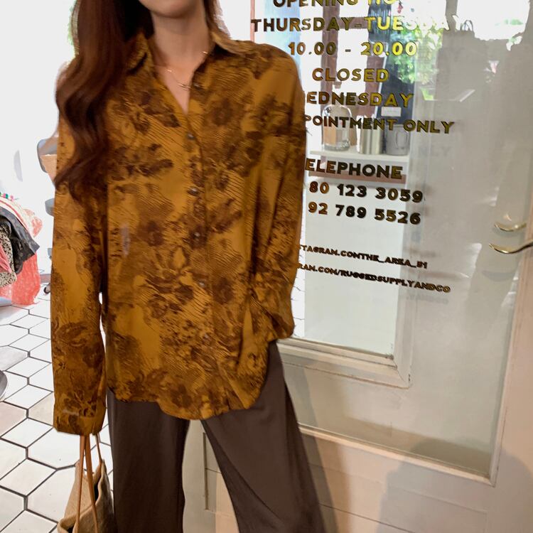 【送料無料】 レトロデザイン フラワー ヴィンテージ風 メンズライク ルーズ 長袖 シャツ とろみ 古着風 羽織 襟付き かわいい 大人可愛い きれいめ シンプル カジュアル 大人 上品 おしゃれ お洒落 かっこいい 大人可愛い 大人女子 こなれ感 ラフ キュート ガーリー ルーズ 無地 オールシーズン 10代 20代 30代 40代 レディース 着回し 普段使い 重ね着 韓国系 オルチャン ファッション コーデ スタイル モテ 体系カバー 脚長 トレンド 流行 インスタ映え
