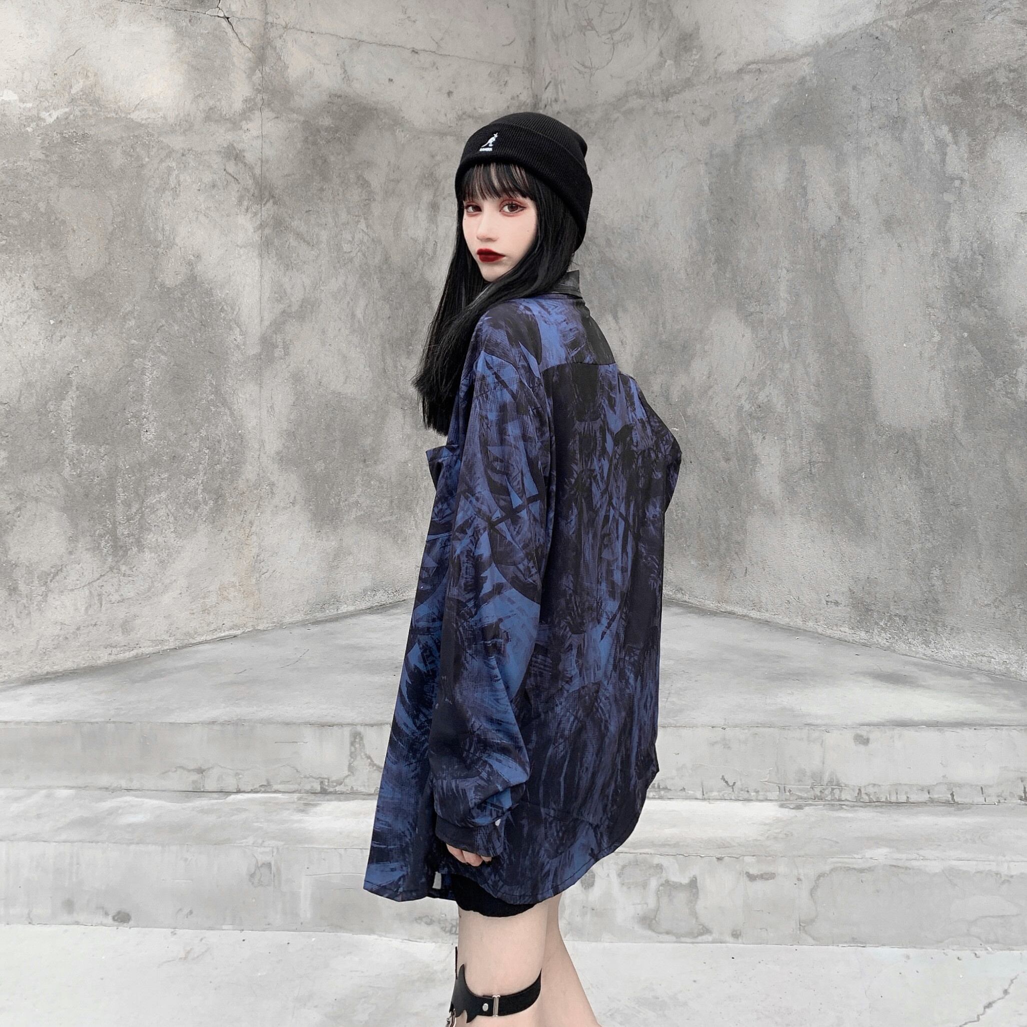 【送料無料】 トップス シャツ 袖あり 長袖 襟付き ポケット カジュアル おしゃれ お洒落 かっこいい 大人女子 こなれ感 ラフ メンズライク ボーイッシュ 個性的 クール 主役級 存在感 柄 ボタニカル タイダイ柄 絞り染め 秋 10代 20代 レディース 学生 通学 デート お出かけ 女子会 休日 着回し 普段使い 重ね着 韓国 韓国系 オルチャン ファッション コーデ スタイル プチプラ トレンド 流行 プチプラ インスタ映え M L XL ゆったり ゆる 色展開 黒 ブラック 青 ブルー