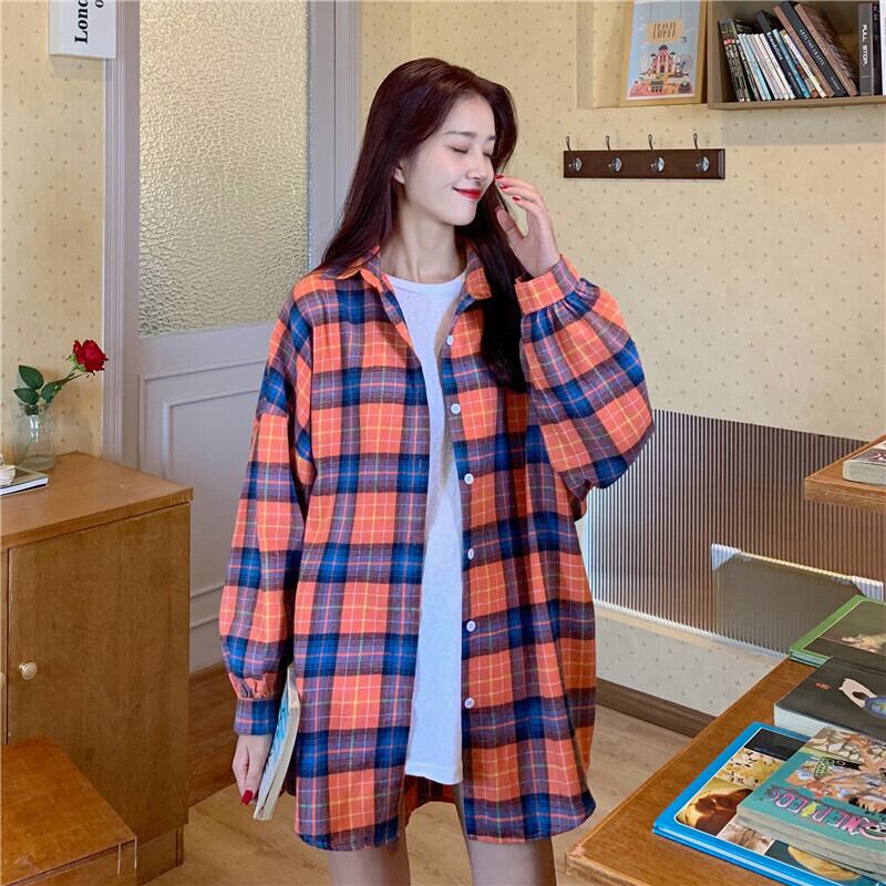 【送料無料】 トップス シャツ ブラウス チェック ミディアム丈 長袖 オーバーサイズ ビッグシルエット かわいい 大人可愛い きれいめ シンプル カジュアル おしゃれ お洒落 大人女子 こなれ感 ラブリー キュート 主役級 存在感 無地 夏 10代 20代 30代 レディース 学生 通学 デート お出かけ 女子会 休日 リゾート 旅行 着回し 普段使い 韓国系 オルチャン ファッション コーデ スタイル 楽ちん モテ ワンサイズ オレンジ グレー ブラック ブラウン