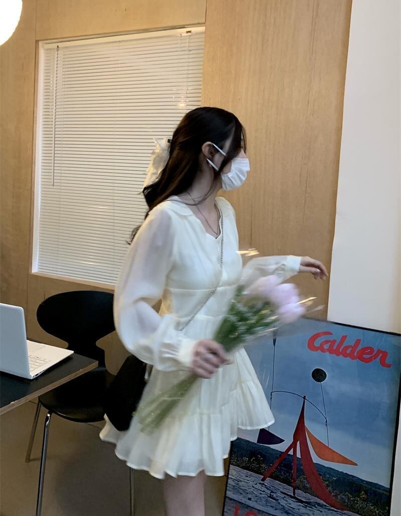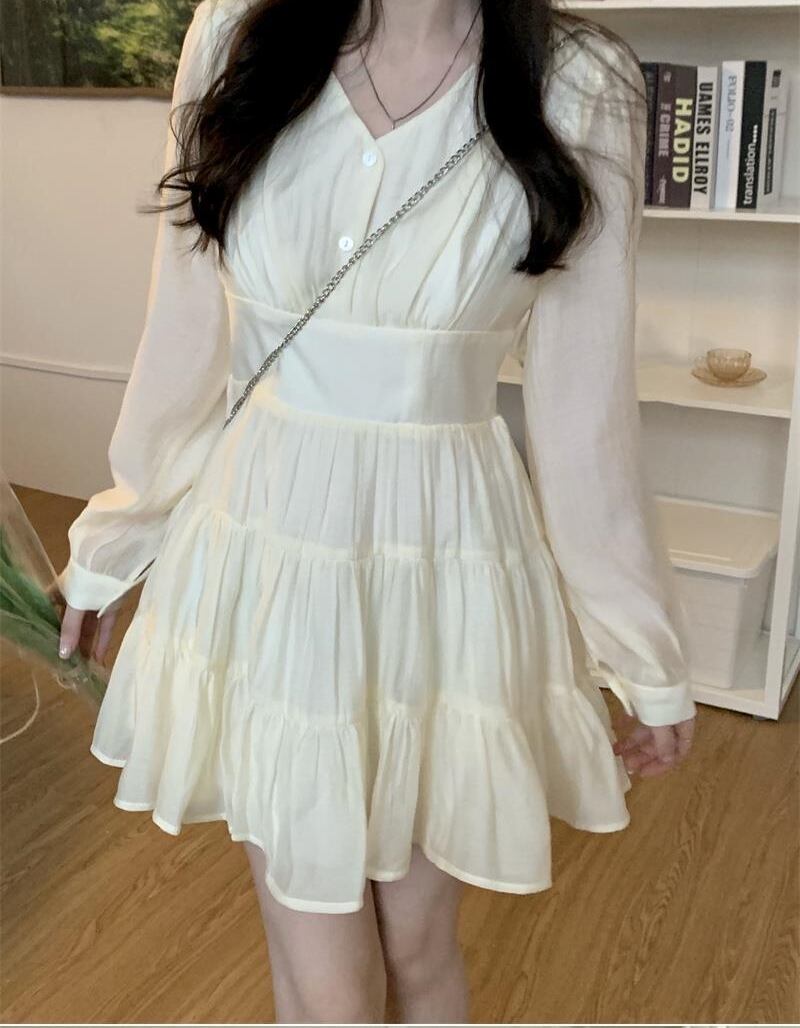 【送料無料】 ワンピース ドレス プルオーバー ティアードワンピース ショート ショート丈 Vネック ミニ 長袖 襟付き Aライン アシンメトリー 切り替えデザイン フリル ハイウエスト かわいい 大人可愛い おしゃれ お洒落 大人女子 こなれ感 ラブリー キュート 個性的 モード系 エレガント 主役級 存在感 無地 春 10代 20代 レディース 学生 通学 デート お出かけ 女子会 パーティー 着回し 普段使い 韓国 韓国系 オルチャン ファッション コーデ モテ 美脚 脚長 S M ベージュ