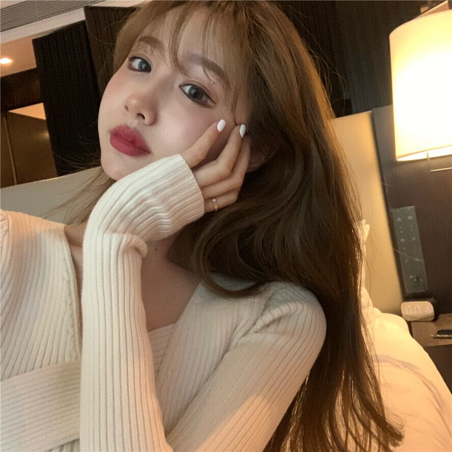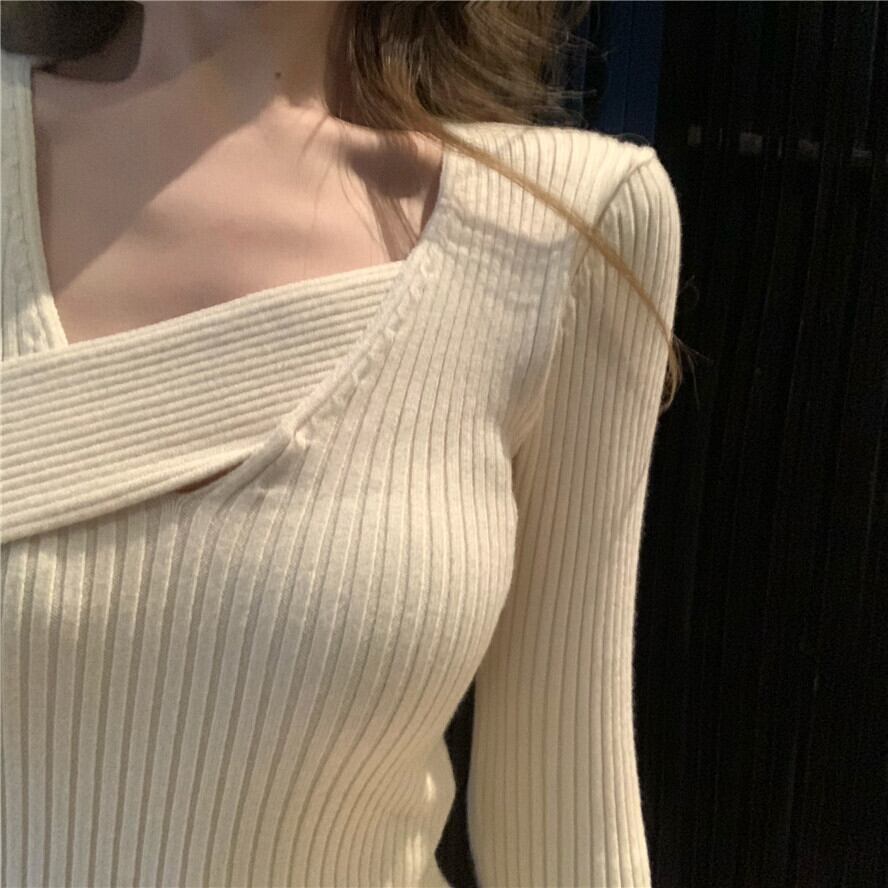 リブニット素材で体のラインを綺麗に見せてくれ、スリット入りでセクシーさアップ。