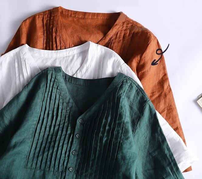 Vネックと七分丈で自然な肌見せが叶う涼し気な一枚です。