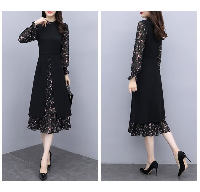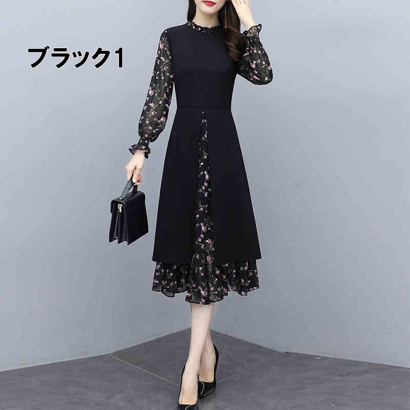 【送料無料】 ワンピース 膝下 ミモレ丈 ロング丈 長袖 プチハイネック フェイクレイヤード シフォン 花柄 透け感 シースルー かわいい 大人可愛い きれいめ 大人 上品 おしゃれ お洒落 大人女子 こなれ感 ラブリー キュート エレガント 主役級 存在感 小花柄 フラワー 春 秋 10代 20代 30代 レディース OL 学生 通学 デート お出かけ 女子会 休日 ガーデン レストラン 着回し 普段使い 韓国系 コーデ スタイル モテ トレンド 流行 インスタ映え L XL 3XL 4XL 5XL