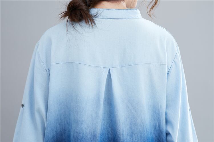 【送料無料】 ラデーション 長袖 シャツワンピース ひざ丈 デニム 襟なし 前開き ゆったり 大きめ 羽織 ブルー かわいい 大人可愛い きれいめ シンプル カジュアル 大人 上品 おしゃれ お洒落 かっこいい 大人可愛い 大人女子 こなれ感 ラフ キュート ガーリー ルーズ 無地 春 夏 秋 10代 20代 30代 40代 レディース 学生 通学 デート お出かけ 女子会 お泊まり 着回し 普段使い 重ね着 韓国系 オルチャン コーデ スタイル モテ 体系カバー 脚長 トレンド 流行 インスタ映え