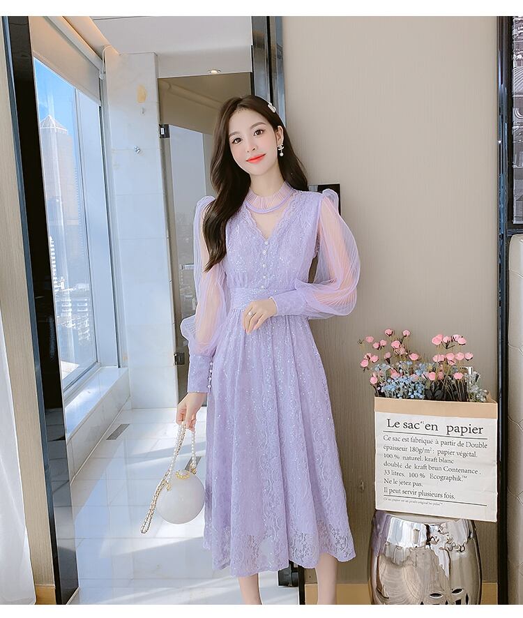 【送料無料】 レース シフォン ワンピース ドレス シアー モックネック Vネック 長袖 パフスリーブ ミモレ丈 二次会 パーティー ハイウエスト かわいい 大人可愛い きれいめ シンプル カジュアル 大人 上品 おしゃれ お洒落 かっこいい 大人可愛い 大人女子 こなれ感 ラフ キュート ガーリー ルーズ 春 夏 10代 20代 30代 レディース デート お出かけ 女子会 お泊まり 着回し 普段使い 重ね着 韓国系 オルチャン コーデ スタイル モテ 体系カバー 脚長 トレンド 流行 インスタ映え