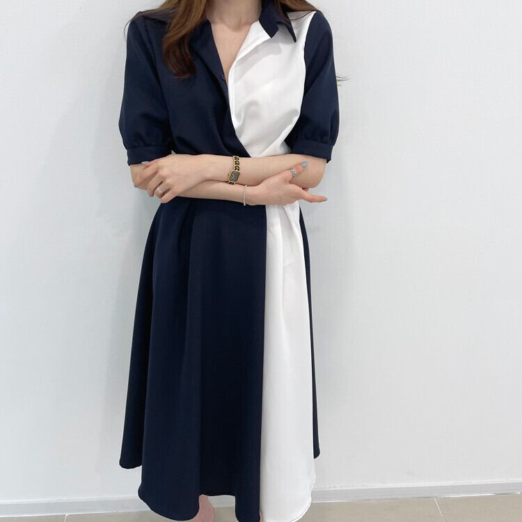 【送料無料】 バイカラー シャツワンピース 半袖 ハイウエスト Vネック 襟付き ミモレ丈 かわいい 大人可愛い きれいめ シンプル カジュアル 大人 上品 おしゃれ お洒落 かっこいい 大人可愛い 大人女子 こなれ感 ラフ キュート ガーリー ルーズ 無地 夏 20代 30代 レディース ビジネス OL 通勤 学生 通学 デート お出かけ 女子会 お泊まり リゾート 旅行 海 プール 着回し 普段使い 重ね着 韓国系 オルチャン コーデ スタイル モテ 体系カバー 脚長 トレンド 流行 インスタ映え