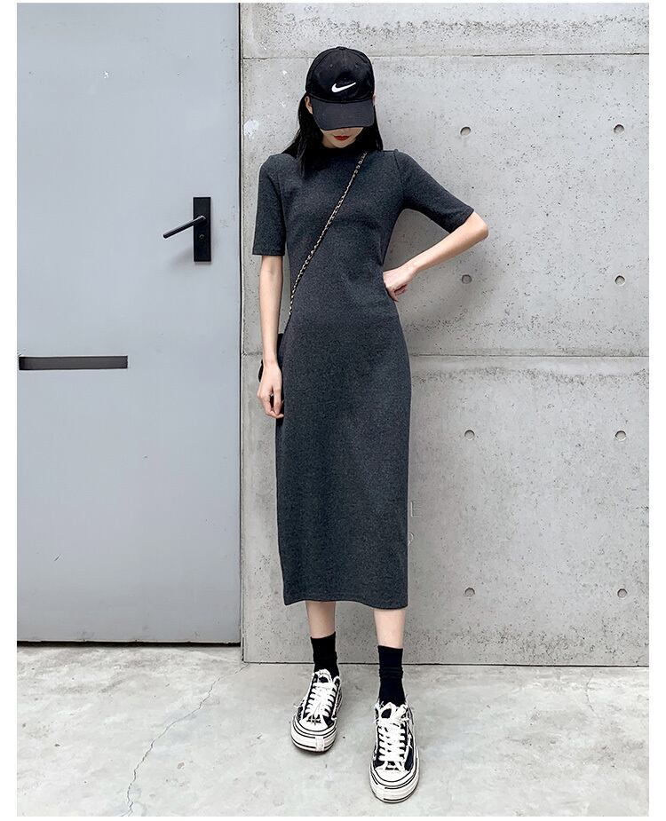 【送料無料】 タイト Tシャツワンピース ロング丈 ミモレ丈 ストレート ラウンドネック 半袖 フィット 無地 かわいい 大人可愛い きれいめ シンプル カジュアル 大人 上品 おしゃれ お洒落 かっこいい 大人可愛い 大人女子 こなれ感 ラフ キュート ガーリー ルーズ 無地 夏 20代 30代 40代 レディース デート お出かけ 女子会 お泊まり 休日 着回し 普段使い 重ね着 韓国系 オルチャン ファッション コーデ スタイル モテ 体系カバー 脚長 トレンド 流行 インスタ映え
