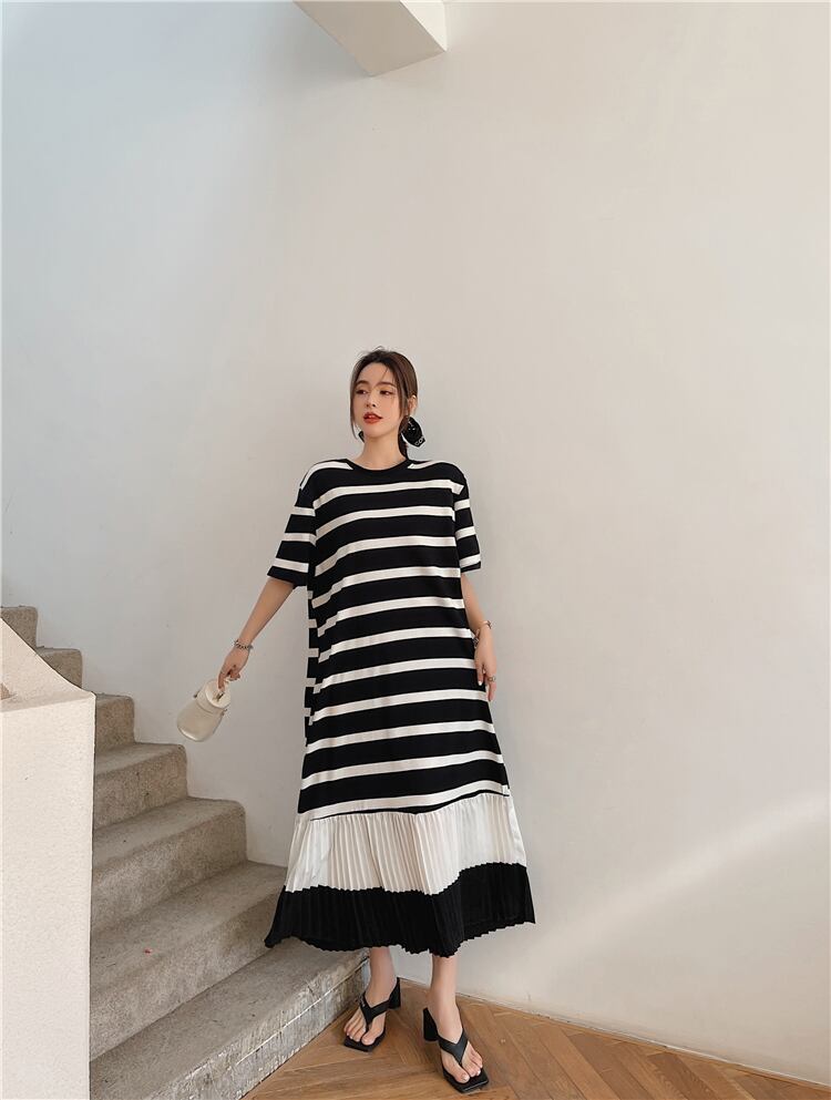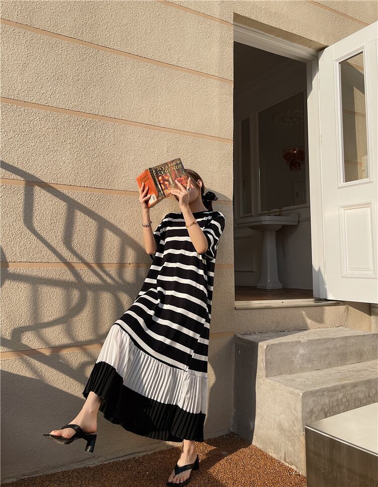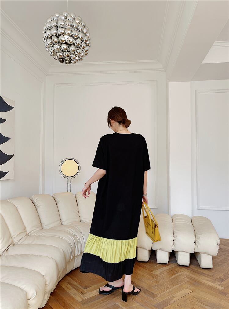 【送料無料】 ルーズ プリーツ ワンピース 半袖 ロング丈 ラウンドネック 重ね着風 ゆったり マタニティ 大きめ Aライン かわいい 大人可愛い きれいめ シンプル カジュアル 大人 上品 おしゃれ お洒落 かっこいい 大人可愛い 大人女子 こなれ感 ラフ キュート ガーリー ルーズ 夏 20代 30代 40代 50代 レディース デート お出かけ 女子会 お泊まり 休日 着回し 普段使い 重ね着 韓国系 オルチャン ファッション コーデ スタイル モテ 体系カバー 脚長 トレンド 流行 インスタ映え