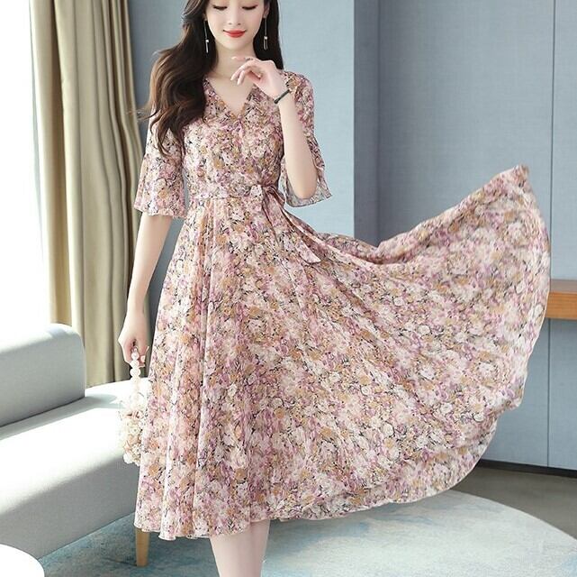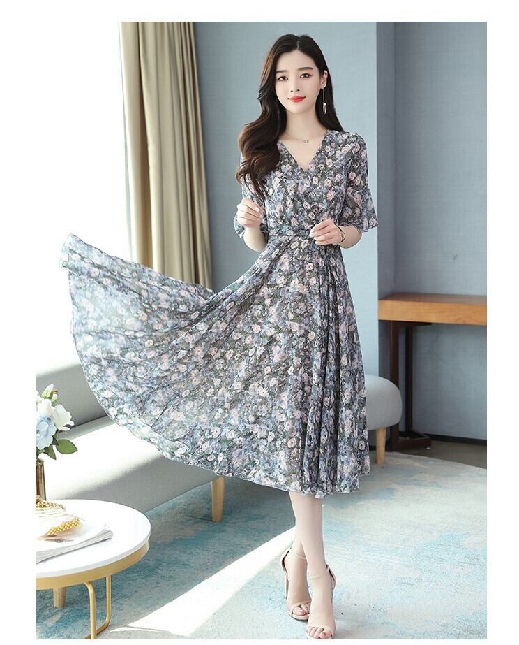 【送料無料】 カシュクール ミモレ丈 フラワー ワンピース ハイウエスト 5分袖 フリル袖 ウエストリボン シフォン Aライン かわいい 大人可愛い きれいめ シンプル カジュアル 大人 上品 おしゃれ お洒落 かっこいい 大人可愛い 大人女子 こなれ感 ラフ キュート ガーリー 夏 20代 30代 レディース デート お出かけ 女子会 お泊まり 休日 パーティー イベント リゾート 着回し 普段使い 重ね着 韓国系 オルチャン コーデ スタイル モテ 体系カバー 脚長 トレンド 流行 インスタ映え