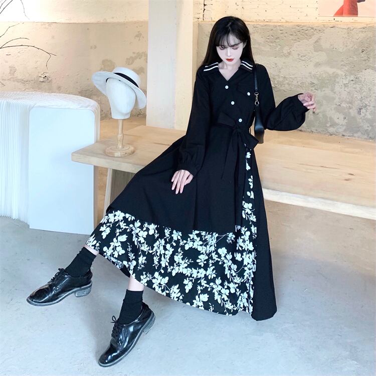 【送料無料】 ワンピース フレアワンピース ワンピドレス ロング ロング丈 袖あり 長袖 Vネック フレア Aライン ウエストリボン かわいい 大人可愛い おしゃれ お洒落 大人女子 こなれ感 キュート 個性的 主役級 存在感 花柄 フラワー 秋 冬 10代 20代 30代 レディース 女性用 学生 通学 デート お出かけ 女子会 お泊まり 休日 パーティー イベント リゾート 旅行 ホテル ガーデン 普段使い 韓国 韓国系 オルチャン 楽ちん モテ 体系カバー 脚長 M L XL 2XL 3XL 4XL