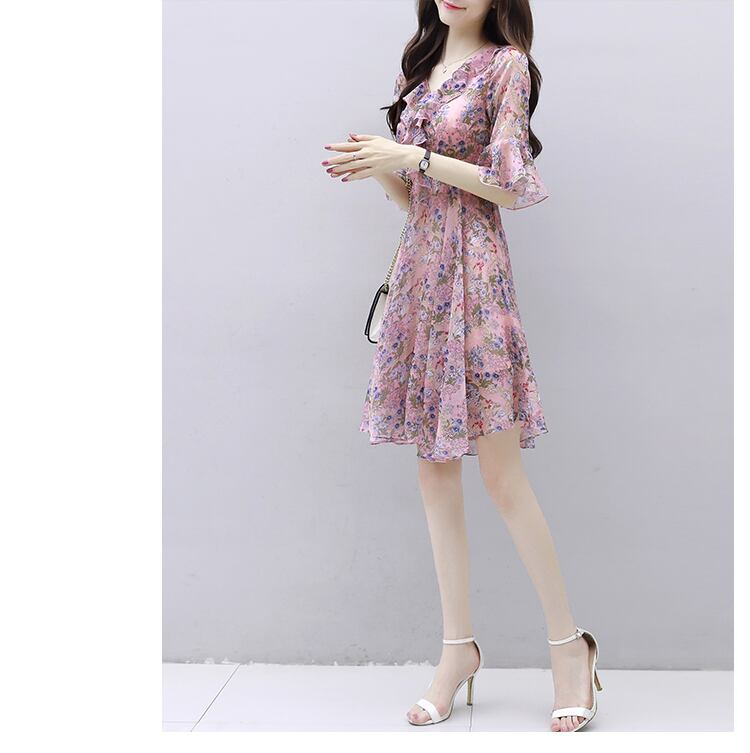 【送料無料】 花柄 シフォン ワンピース ひざ丈 フレア ハイウエスト5分袖 リゾートワンピ Vネック Aライン かわいい 大人可愛い きれいめ シンプル カジュアル 大人 上品 おしゃれ お洒落 かっこいい 大人可愛い 大人女子 こなれ感 ラフ キュート ガーリー ルーズ 夏 10代 20代 30代 レディース デート お出かけ 女子会 お泊まり 休日 着回し 普段使い 重ね着 韓国系 オルチャン ファッション コーデ スタイル モテ 体系カバー 脚長 トレンド 流行 インスタ映え
