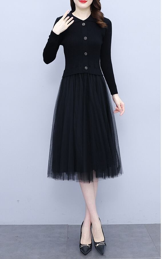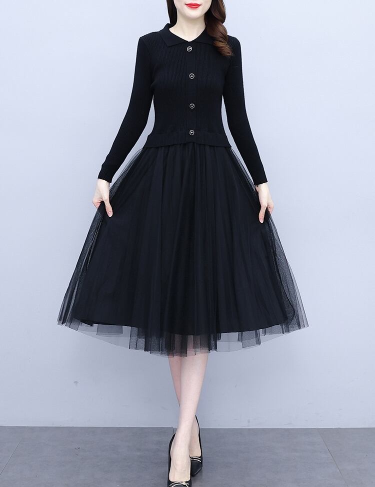 【送料無料】 ワンピース チュールワンピース ひざ丈 ニット 襟付き シースルー リブ 長袖 ハイウエスト かわいい 大人可愛い きれいめ シンプル カジュアル 大人 上品 おしゃれ お洒落 かっこいい 大人可愛い 大人女子 こなれ感 ラフ キュート ガーリー ルーズ 春 夏 10代 20代 レディース デート お出かけ 女子会 お泊まり プール 着回し 普段使い 重ね着 ファッション コーデ スタイル 体型カバー 脚長 トレンド 流行 インスタ映え L XL 2XL 3XL 4XL 5XLブラック