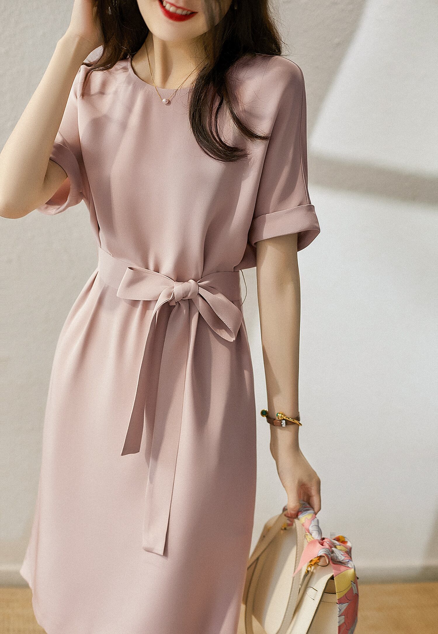 【送料無料】 ワンピース プルオーバー 膝丈 ひざ丈 袖あり 半袖 ラウンドネック Aライン 大人可愛い きれいめ 大人 上品 おしゃれ お洒落 大人女子 こなれ感 クール エレガント 主役級 存在感 無地 夏 入学式 入園式 謝恩会 結婚式 二次会 発表会 演奏会 お呼ばれ 20代 30代 40代 レディース 女性用 OL 通勤 学生 通学 デート お出かけ 女子会 休日 着回し 普段使い 韓国 韓国系 オルチャン ファッション コーデ スタイル モテ 新作 インスタ映え S M L XL ピンク