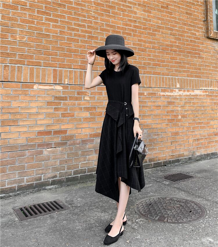 【送料無料】 ワンピース ミドル丈 ロング 半袖 ラウンドネック Aライン 切り替えデザイン アシンメトリー ハイウエスト かわいい 大人可愛い きれいめ シンプル 大人 上品 おしゃれ お洒落 こなれ感 ラフ 個性的 存在感 夏 発表会 演奏会 お呼ばれ 20代 30代 レディース 女性用 OL 学生 通学 デート お出かけ 女子会 休日 旅行 着回し 普段使い 韓国 韓国系 オルチャン ファッション コーデ スタイル モテ 流行 インスタ映え S M L XL 2XL 大きいサイズ 黒 ブラック