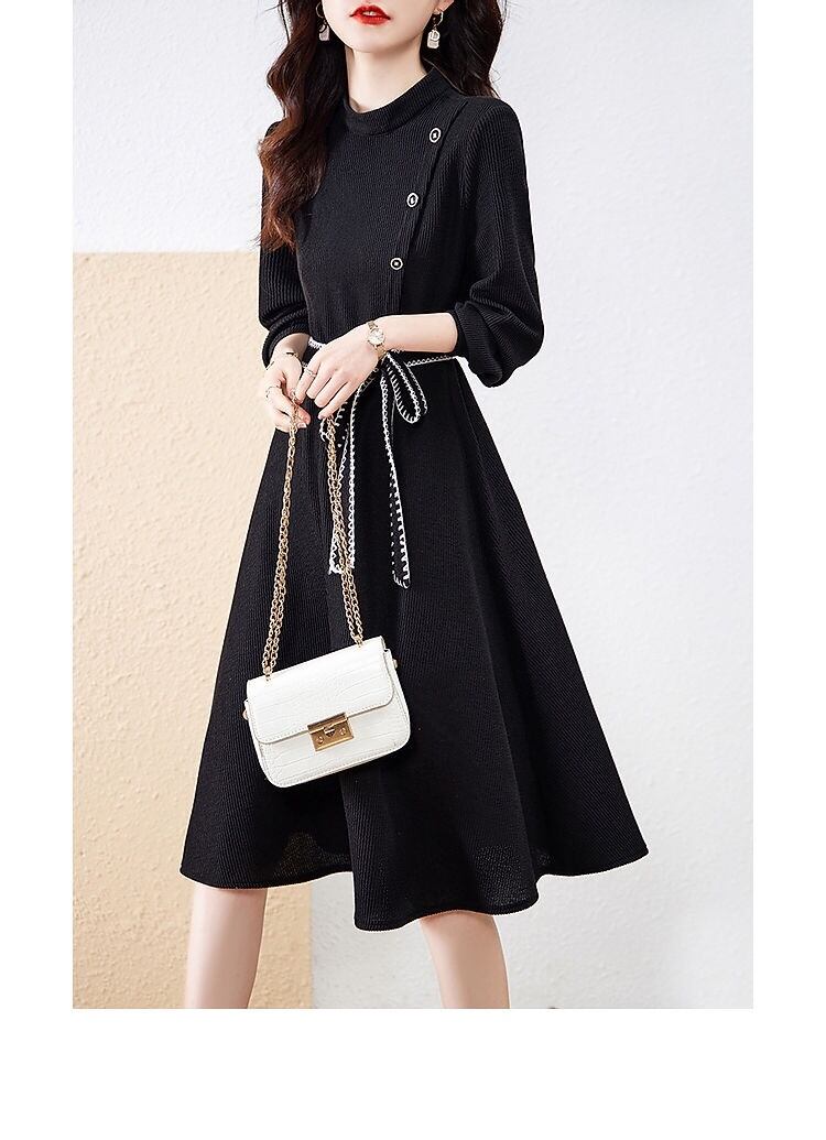 【送料無料】 ワンピース 膝丈 ひざ丈 長袖 フレア ウエストリボン かわいい 大人可愛い きれいめ 大人 上品 おしゃれ お洒落 大人女子 こなれ感 主役級 存在感 フォーマル 無地 春 秋 冬 入学式 入園式 卒業式 卒園式 謝恩会 二次会 発表会 演奏会 お呼ばれ 20代 30代 40代 レディース ビジネス OL お出かけ ホテル ガーデン レストラン 韓国 韓国系 オルチャン ファッション コーデ スタイル モテ S M L XL 2XL 大きいサイズ 黒 ブラック