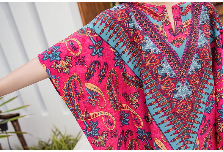 リゾート気分を盛り上げてくれる鮮やかなエスニックプリントワンピースです。