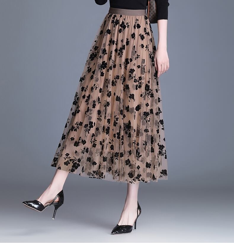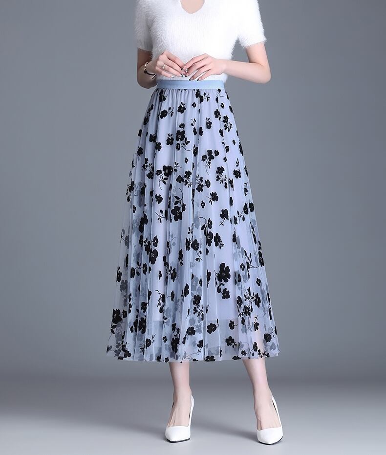 【送料無料】 スカート ボトムス チュールスカート 膝下 ロング ロング丈 ミドル丈 Aライン チュール かわいい 大人可愛い きれいめ 大人 上品 おしゃれ お洒落 こなれ感 ラフ エレガント 主役級 存在感 柄 花柄 小花柄 フラワー 春 夏 10代 20代 30代 40代 レディース 女性用 OL 通勤 学生 通学 デート お出かけ 公園デビュー 女子会 休日 着回し 普段使い 韓国 韓国系 オルチャン コーデ スタイル モテ インスタ映え フリーサイズ 黒 ブラック 茶 ブラウン 青