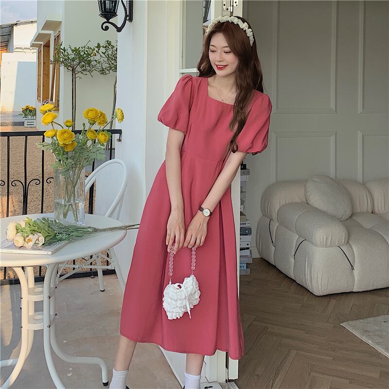 【送料無料】ワンピース フリル ひざ下丈 ミモレ丈 タック 無地 パフスリーブ ホワイト レッド 半袖 スクエアネック フリル Aライン かわいい 大人可愛い きれいめ シンプル カジュアル 大人 上品 おしゃれ お洒落 かっこいい 大人女子 こなれ感 ラフ キュート ガーリー ルーズ春 夏 10代 20代 レディース ママ デート お出かけ 女子会 お泊まり 休日 旅行 海 プール 着回し 普段使い 重ね着 韓国系 オルチャン ファッション コーデ スタイル モテ 脚長 トレンド 流行 インスタ映え