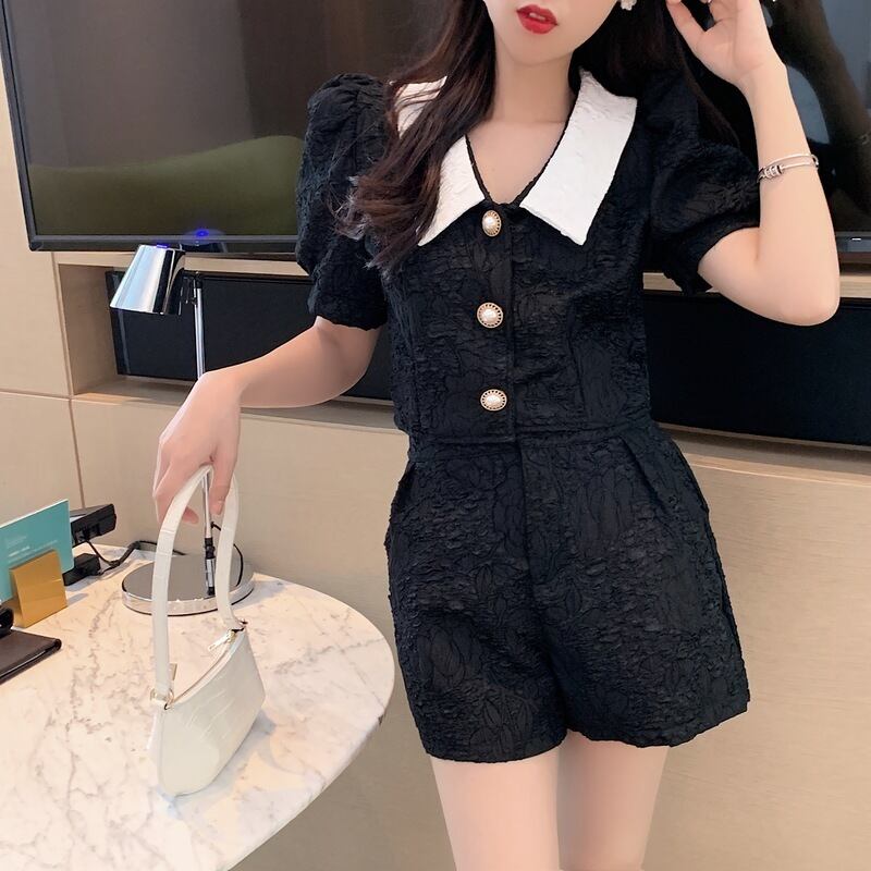 【送料無料】 セットアップ パフスリーブ ブラウス 襟付き 半袖 ボタン ショートパンツ ハイウエスト レース かわいい 大人可愛い きれいめ シンプル カジュアル 大人 上品 おしゃれ お洒落 かっこいい 大人可愛い 大人女子 こなれ感 ラフ キュート ガーリー ルーズ 10代 20代 30代 40代 レディース デート お出かけ 女子会 お泊まり 休日 着回し 普段使い 重ね着 韓国系 オルチャン ファッション コーデ スタイル モテ 体系カバー 脚長 トレンド 流行 インスタ映え ブラック ホワイト