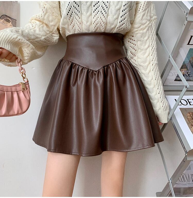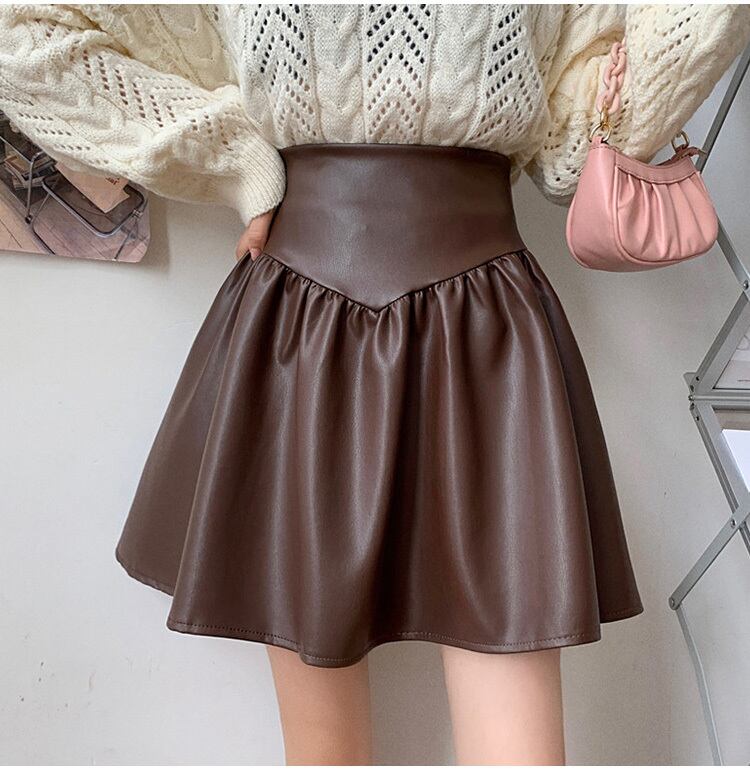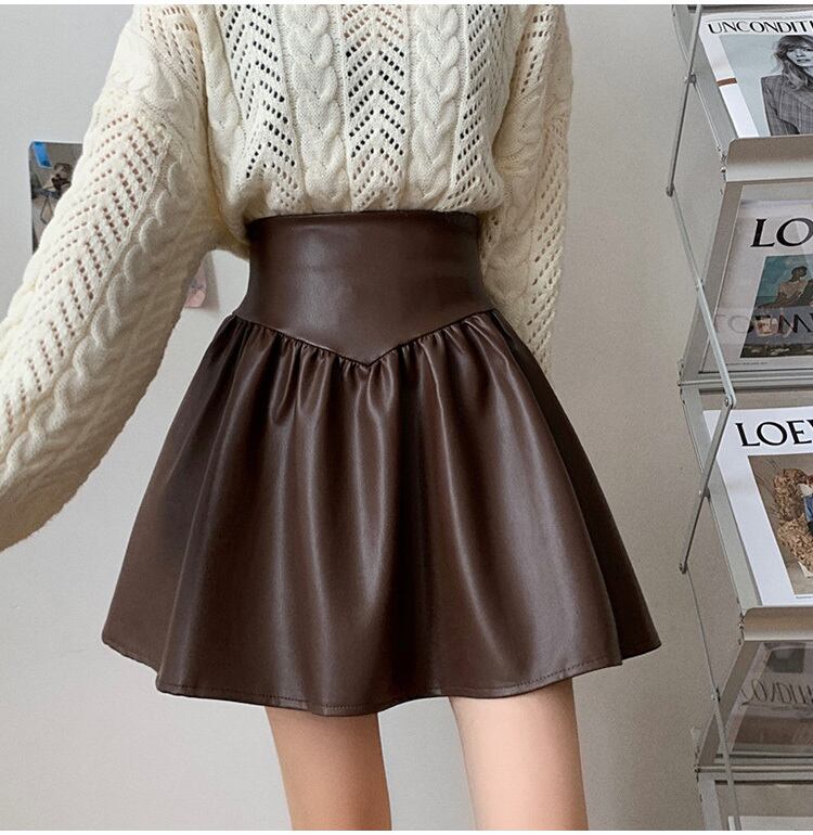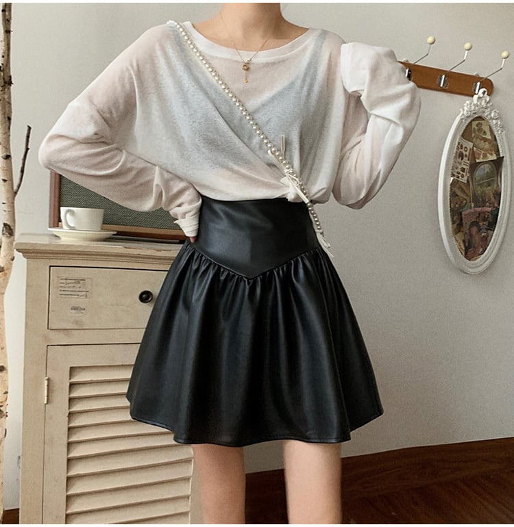 艶やかなフェイクレザーのミニスカート