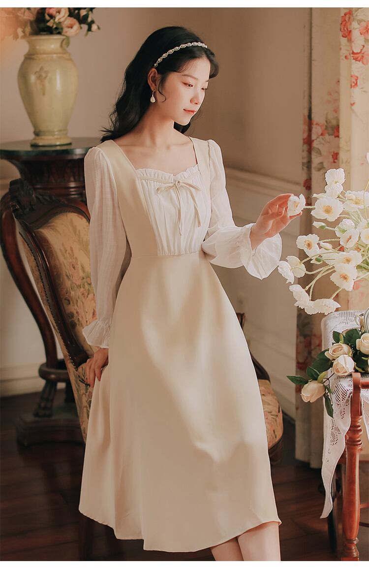 【送料無料】 ワンピース 重ね着風 ブラウスドッキング 長袖 半袖 ハイウエスト ミモレ丈 リボン かわいい 大人可愛い きれいめ シンプル カジュアル 大人 上品 おしゃれ お洒落 かっこいい 大人可愛い 大人女子 こなれ感 ラフ キュート ガーリー ルーズ 10代 20代 レディース 通勤 学生 通学 デート お出かけ 女子会 お泊まり 休日 着回し 普段使い 重ね着 韓国系 オルチャン ファッション コーデ スタイル モテ 体系カバー 脚長 トレンド 流行 インスタ映え