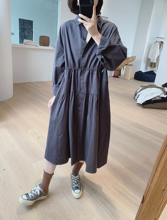 ゆったりとしたデザインがふんわりシルエットを作るシャツワンピースです。