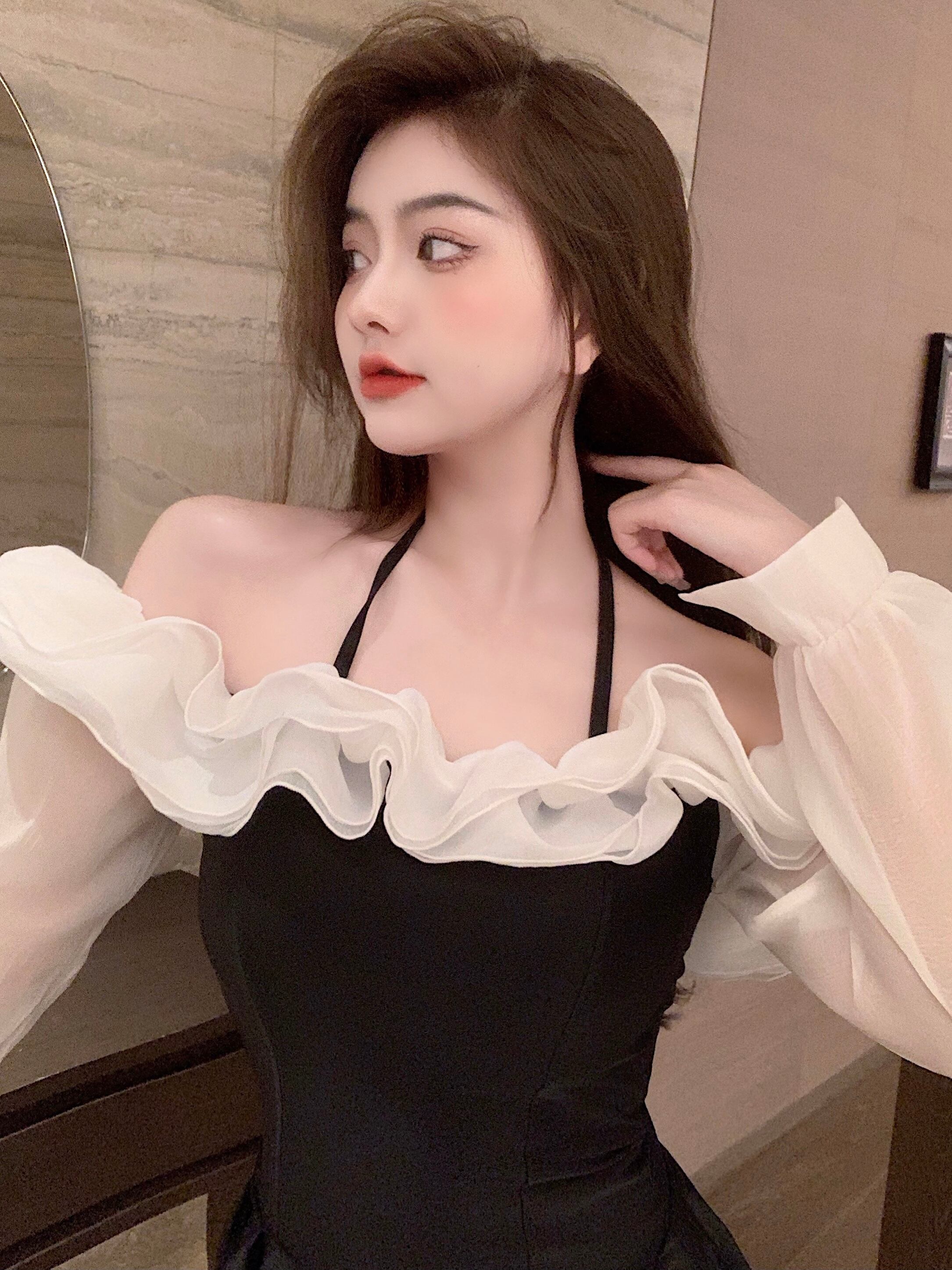 露出を抑えた洋服のような仕立てが大人っぽい一枚です。