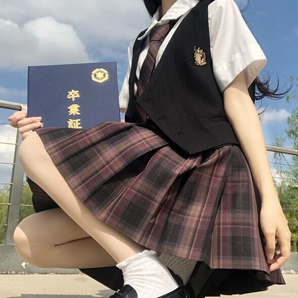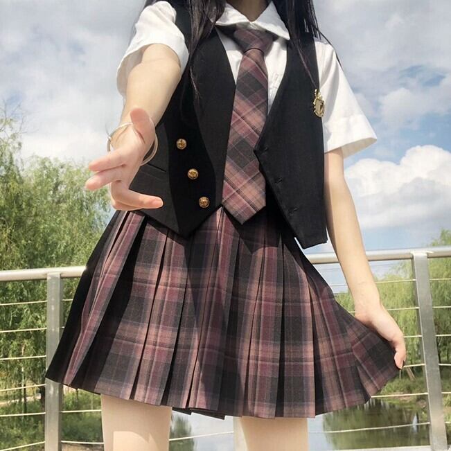 白のシャツ、スクール風ベストと合わせて制服風コーデはもちろん、シンプルなカットソーやニットと合わせてもかわいい♪