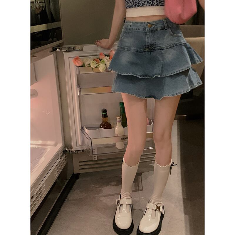 【送料無料】 スカート ボトムス ミニスカート デニムスカート ミニ ミニ丈 フレア フリル ハイウエスト デニム ブルーデニム かわいい 大人可愛い カジュアル おしゃれ お洒落 ラブリー キュート ガーリー 個性的 主役級 存在感 無地 夏 10代 20代 レディース 女の子 学生 通学 デート お出かけ 女子会 休日 イベント 旅行 着回し 普段使い 韓国 韓国系 オルチャン ファッション コーデ スタイル モテ 美脚 脚長 プチプラ トレンド 流行 インスタ映え S M L XL 青 ブルー