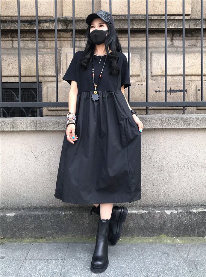 【送料無料】 ワンピース フレアワンピース 半袖ワンピース ロング ロング丈 ミディアム丈 袖あり 半袖 切り替えデザイン フレア かわいい 大人可愛い きれいめ シンプル カジュアル 大人 上品 おしゃれ 大人女子 こなれ感 ラフ マニッシュ ガーリー スポーティー 存在感 抜け感 無地 春 夏 10代 20代 30代 レディース 女性用 学生 通学 デート お出かけ 女子会 お泊まり 休日 リゾート 旅行 着回し 普段使い 韓国 韓国系 オルチャン 楽ちん モテ M L XL 黒 ブラック