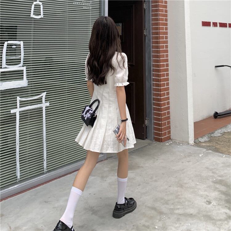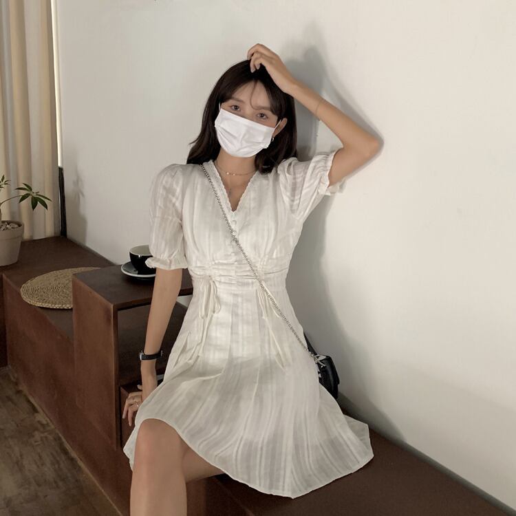 【送料無料】 ワンピース ショート ショート丈 ミニ ミニ丈 パフスリーブ Vネック 切り替えデ リボン ギャザー プリールスカート Aライン ハイウエスト 清楚 かわいい 大人可愛い きれいめ おしゃれ お洒落 大人女子 こなれ感 ラブリー キュート ガーリー 主役級 存在感 無地 夏 10代 20代 レディース 学生 通学 デート お出かけ 女子会 休日 旅行 着回し 普段使い 韓国 韓国系 オルチャン ファッション コーデ スタイル モテ 体系カバー インスタ映え XS S M L 白 ホワイト