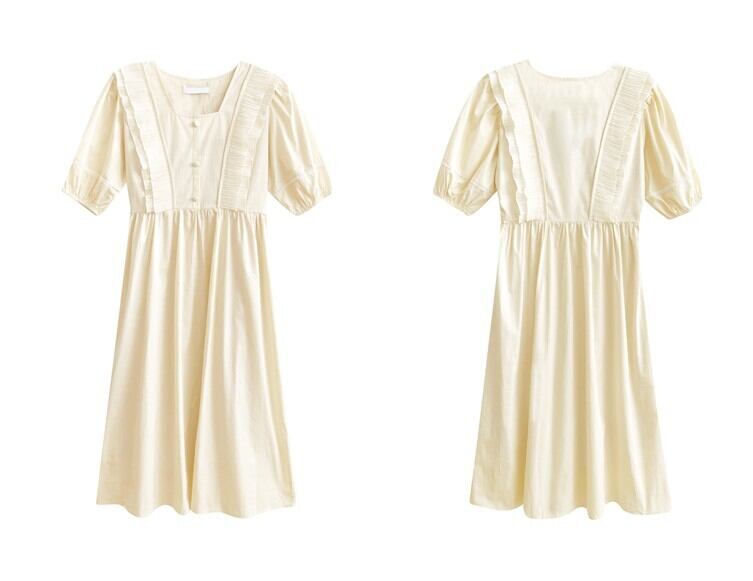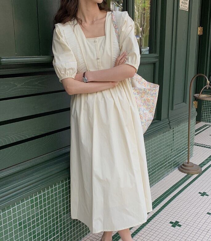 【送料無料】 ワンピース ロング ロング丈 ミドル丈 半袖 パフスリーブ スクエアネック フリル ハイウエスト かわいい 大人可愛い きれいめ おしゃれ お洒落 大人女子 こなれ感 ラブリー キュート ガーリー エレガント 主役級 フェミニン 無地 夏 発表会 演奏会 お呼ばれ 10代 20代 レディース 女の子 学生 通学 デート 女子会 休日 旅行 ガーデン レストラン 着回し 普段使い 韓国 韓国系 オルチャン ファッション コーデ スタイル モテ フリーサイズ ワンサイズ アプリコット