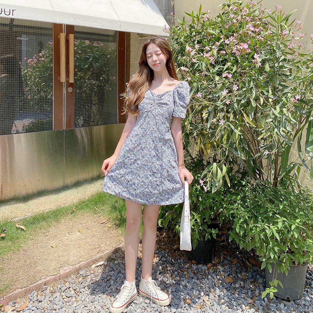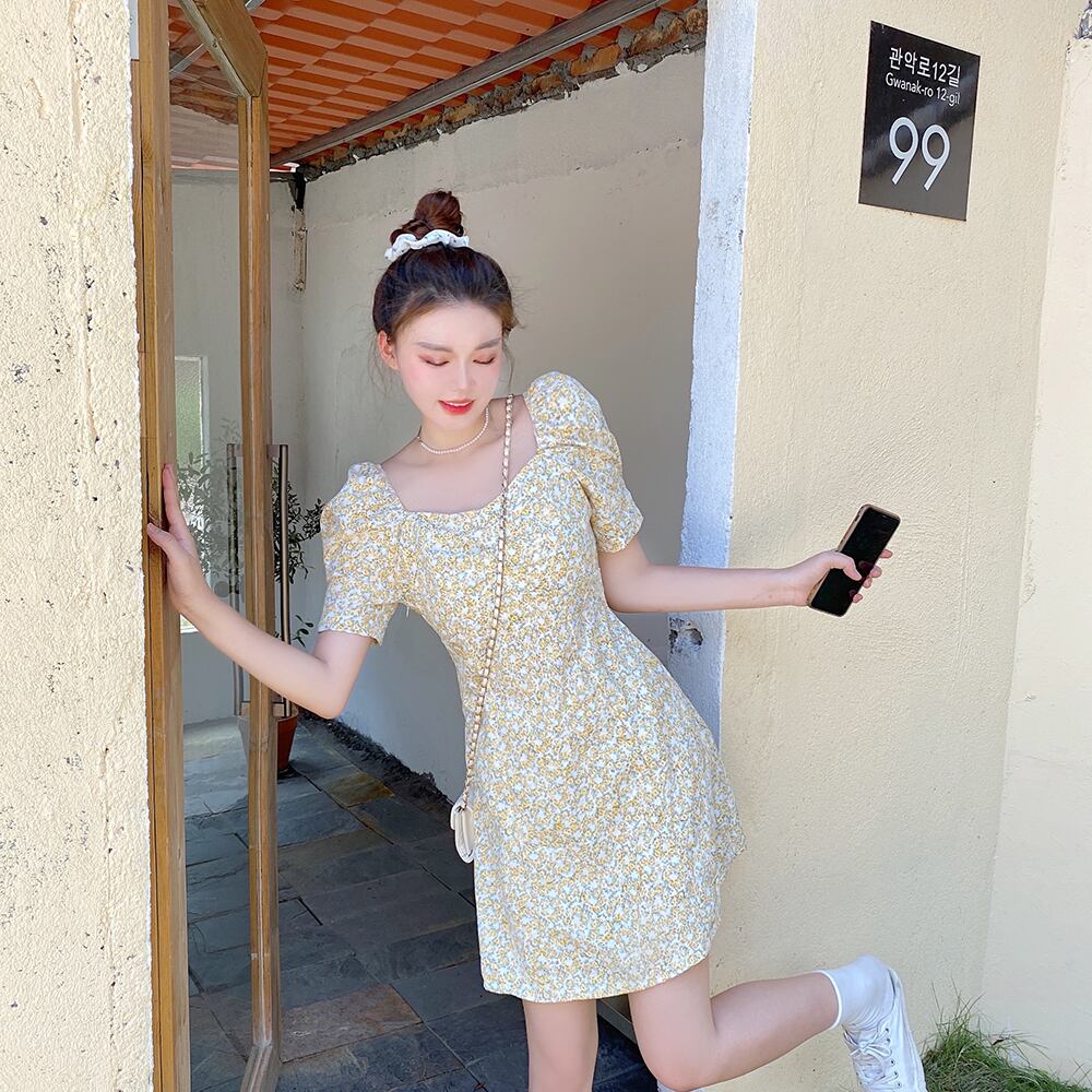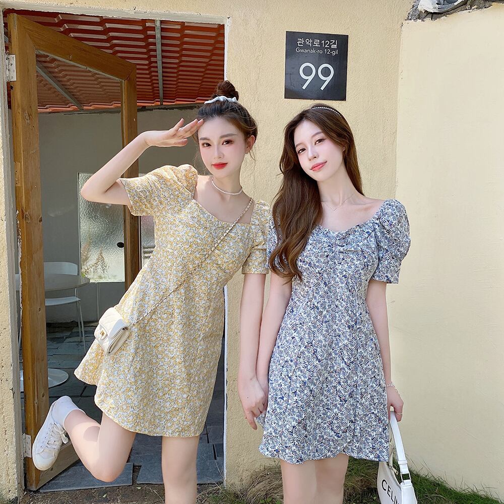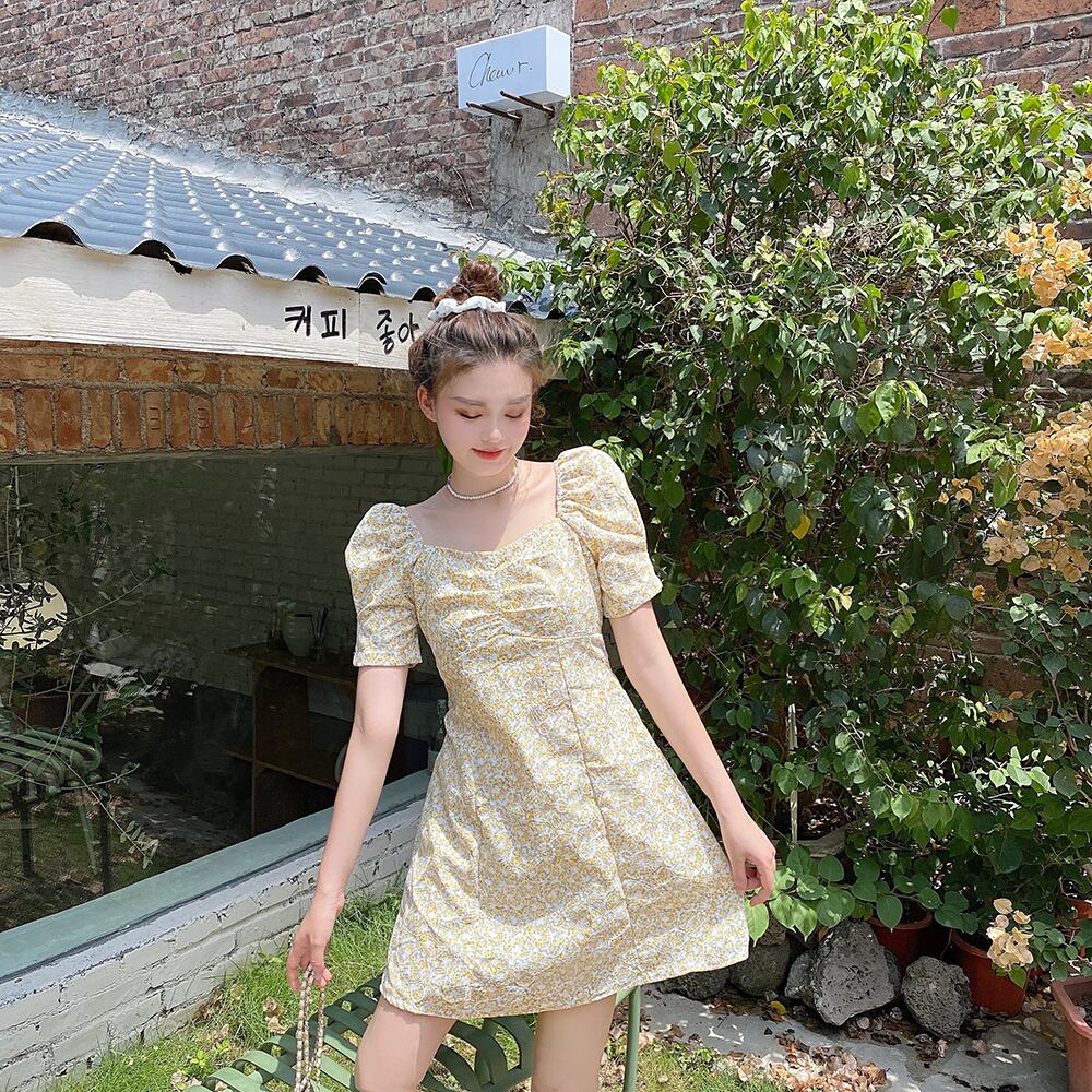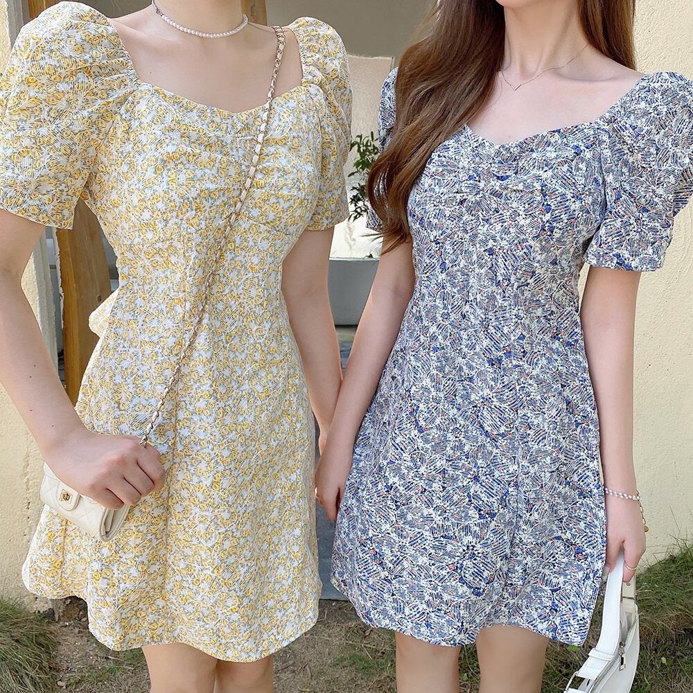 【送料無料】 ワンピース ショート ショート丈 膝上 半袖 パフスリーブ スクエアネック Aライン ハイウエスト かわいい 大人可愛い きれいめ 上品 おしゃれ お洒落 大人女子 こなれ感 ラブリー キュート ガーリー フェミニン 柄 花柄 小花柄 フラワー 夏 10代 20代 レディース 学生 通学 デート お出かけ 女子会 休日 着回し 普段使い 韓国 韓国系 オルチャン ファッション コーデ スタイル モテ トレンド 流行 インスタ映え お揃い 双子 L XL 2XL 3XL ブルー イエロー