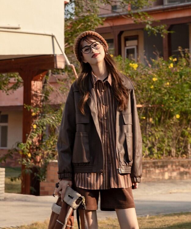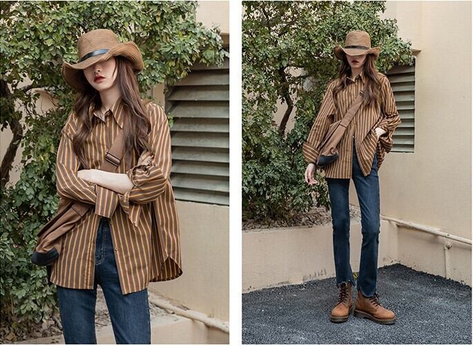 【送料無料】 トップス シャツ 長袖 襟付き かわいい 大人可愛い きれいめ カジュアル 上品 おしゃれ お洒落 かっこいい レトロ 大人女子 こなれ感 ラフ クール エレガント 主役級 存在感 柄 ストライプ 秋 冬 20代 30代 40代 レディース 女性用 OL 通勤 学生 通学 デート お出かけ 女子会 休日 イベント 旅行 着回し 普段使い 韓国 韓国系 オルチャン ファッション コーデ スタイル 体系カバー トレンド 流行 インスタ映え S M ゆったり ゆる ブラウン