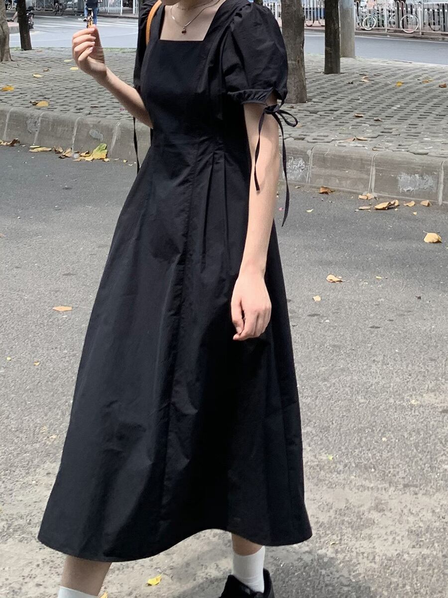 【送料無料】 ワンピース ロング ロング丈 半袖 Aライン スクエアネック かわいい 大人可愛い きれいめ 大人 上品 おしゃれ お洒落 大人女子 こなれ感 ラブリー キュート ガーリー セクシー とろみ感 無地 夏 10代 20代 30代 レディース 学生 通学 デート お出かけ 女子会 休日 イベント リゾート 旅行 着回し 普段使い 韓国 韓国系 オルチャン ファッション コーデ スタイル モテ 体系カバー トレンド 流行 インスタ映え XS S M L XL ブラック ホワイト ラベンダー