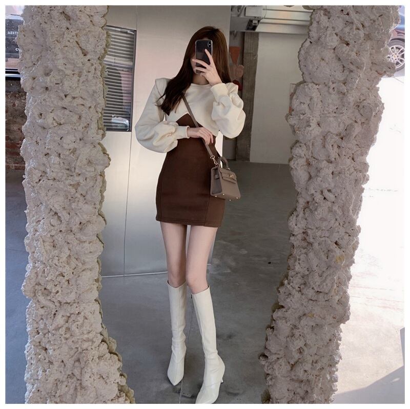 【送料無料】 ワンピース バイカラー ドッキングワンピース レイヤード風 ぽわん袖 ミニ丈ワンピ 肩フリル ハイウエストかわいい 大人可愛い きれいめ シンプル カジュアル 大人 上品 おしゃれ お洒落 かっこいい 大人可愛い 大人女子 こなれ感 ラフ キュート ガーリー ルーズ 10代 20代 レディース 学生 通学 デート お出かけ 女子会 お泊まり 休日 着回し 普段使い 重ね着 韓国系 オルチャン ファッション コーデ スタイル モテ 体系カバー 脚長 トレンド 流行 インスタ映え