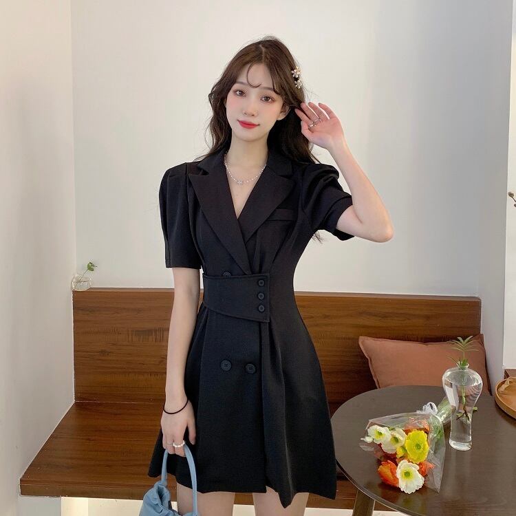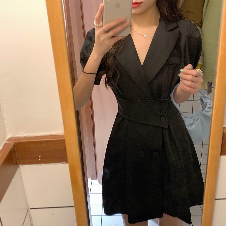 【送料無料】 ワンピース ジャケット風ワンピース ショート ショート丈 半袖 襟付き ウエストマーク かわいい 大人可愛い きれいめ 大人 おしゃれ お洒落 大人女子 こなれ感 ラブリー キュート 個性的 主役級 存在感 無地 夏 10代 20代 レディース 学生 通学 デート お出かけ 女子会 着回し 普段使い 韓国 韓国系 オルチャン ファッション コーデ スタイル モテ 美脚 脚長 トレンド 流行 インスタ映え M L XL 2XL 3XL 4XL 色展開 黒 ブラック 青 ブルー