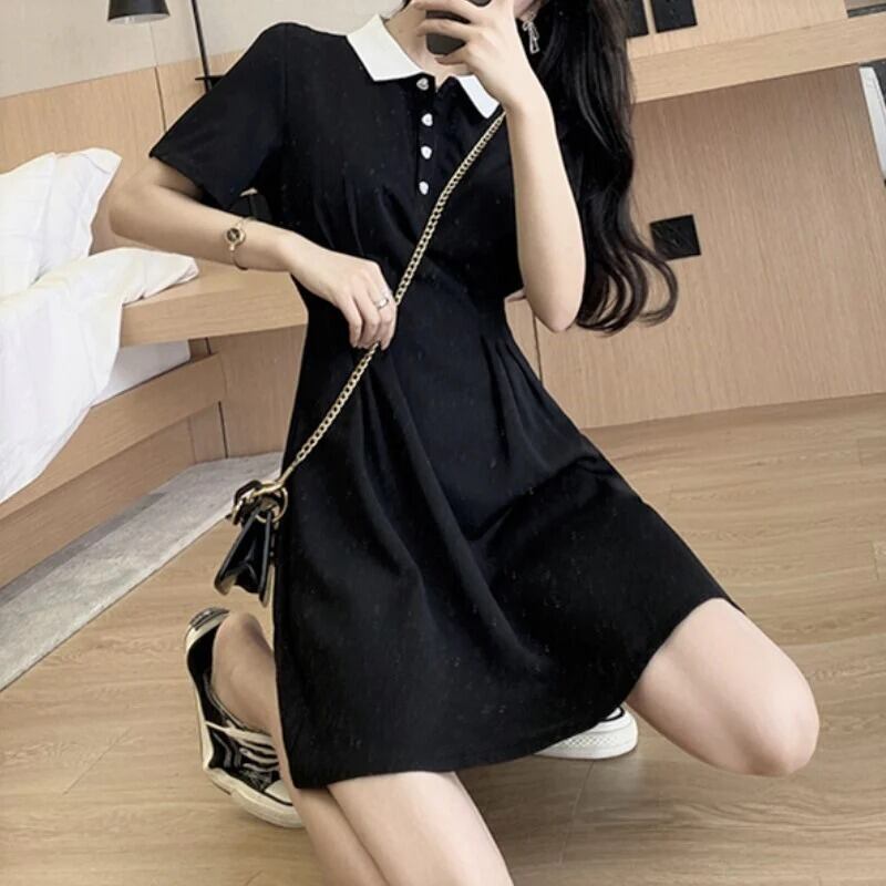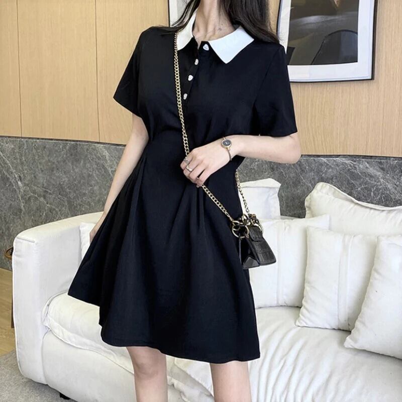 【送料無料】 ワンピース ミニ ミニ丈 ショート ショート丈 半袖 襟付き ハイウエスト かわいい 大人可愛い きれいめ 大人 おしゃれ お洒落 大人女子 こなれ感 ラブリー キュート ガーリー レトロ 個性的 主役級 存在感 無地 夏 10代 20代 レディース 学生 通学 デート お出かけ 女子会 着回し 普段使い 韓国 韓国系 オルチャン ファッション コーデ スタイル モテ 美脚 脚長 トレンド 流行 インスタ映え M L XL 2XL 3XL 4XL 大きいサイズ 黒 ブラック モノトーン