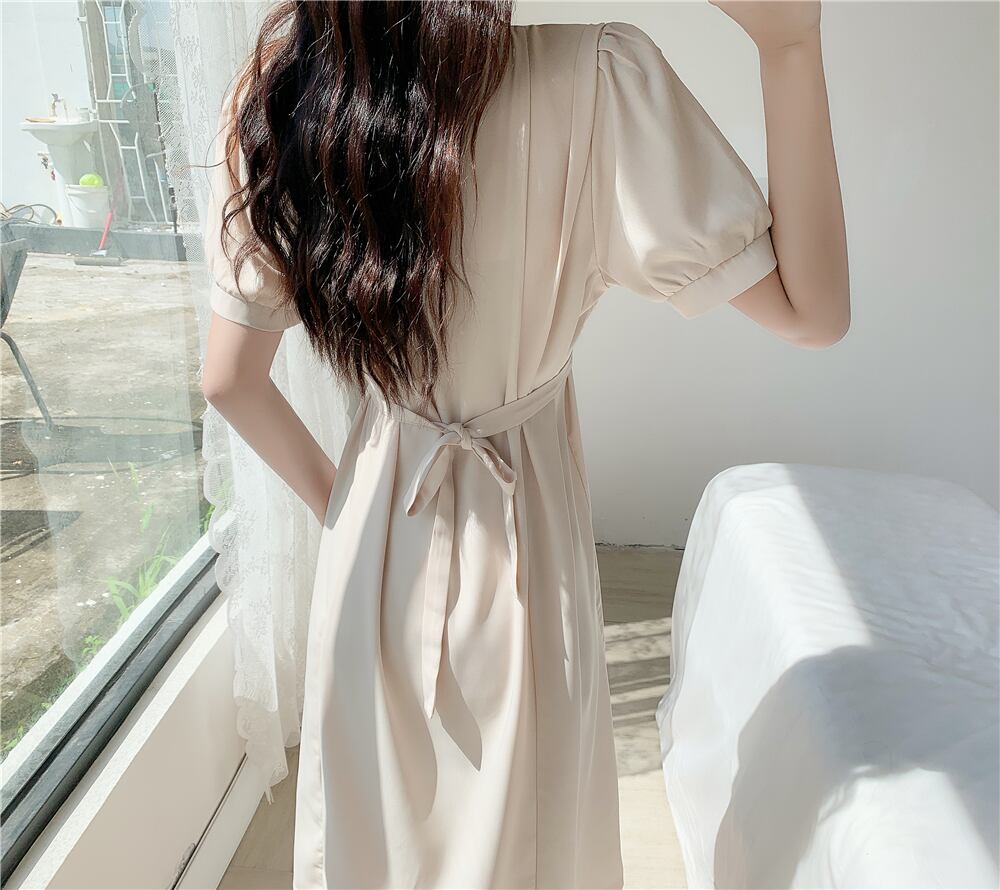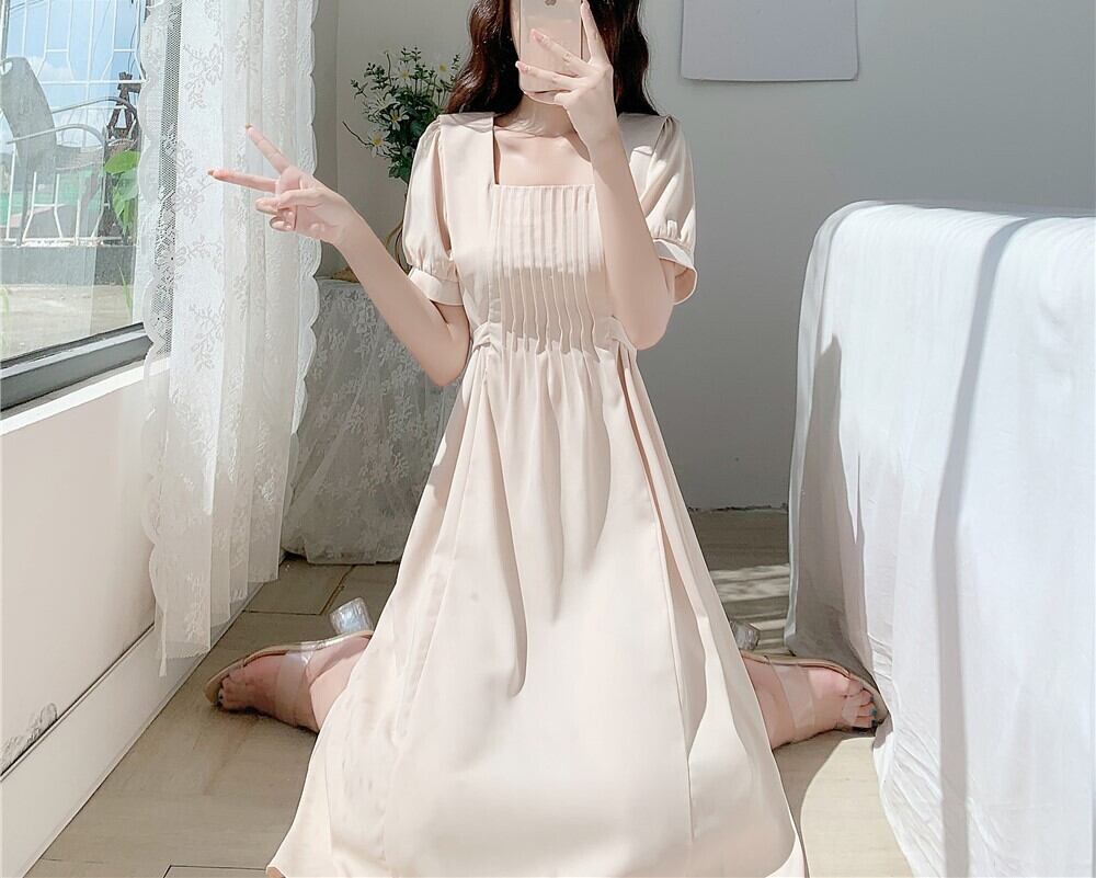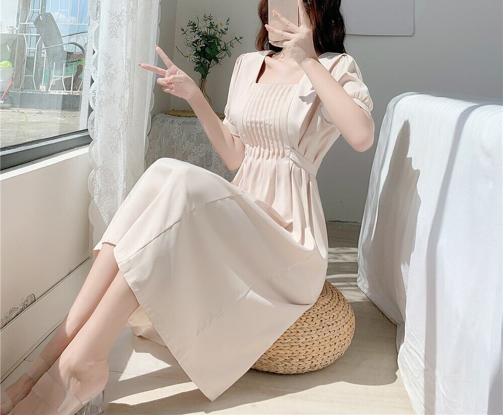 【送料無料】 ワンピース ミドル丈 半袖 パフスリーブ スクエアネック スリム 細身 ストレート ハイウエスト かわいい 大人可愛い きれいめ 大人 上品 おしゃれ お洒落 大人女子 こなれ感 ラブリー キュート エレガント 存在感 無地 夏 発表会 演奏会 お呼ばれ 20代 30代 40代 レディース OL 学生 通学 デート お出かけ 女子会 パーティー イベント 着回し 普段使い 韓国 韓国系 オルチャン ファッション コーデ スタイル モテ 体系カバー M L XL 2XL 3XL 4XL
