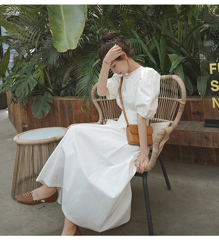 【送料無料】 ワンピース ロング ロング丈 半袖 パフスリーブ ラウンドネック ハイウエスト かわいい 大人可愛い きれいめ カジュアル 上品 おしゃれ お洒落 こなれ感 ラフ ラブリー キュート ガーリー エレガント 主役級 存在感 無地 春 夏 10代 20代 30代 レディース 女性用 学生 通学 デート お出かけ 女子会 休日 着回し 普段使い 韓国 韓国系 オルチャン ファッション コーデ スタイル 楽ちん モテ 体系カバー トレンド 流行 S M L XL 白 ホワイト