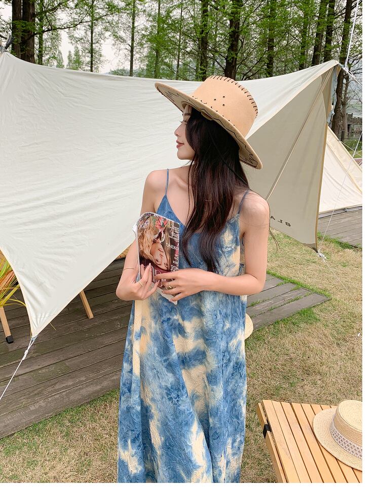 【送料無料】 ワンピース キャミワンピース ロング ロング丈 袖なし ノースリーブ Vネック スクエアネック 大人可愛い きれいめ カジュアル 大人 上品 おしゃれ お洒落 クール セクシー エレガント 主役級 存在感 柄 タイダイ柄 絞り染め 春 夏 秋 10代 20代 30代 40代 学生 通学 デート お出かけ 女子会 休日 リゾート 旅行 着回し 普段使い 重ね着 韓国 韓国系 オルチャン ファッション コーデ モテ 体系カバー トレンド 流行 インスタ映え S M L 青 ブルー ピンク