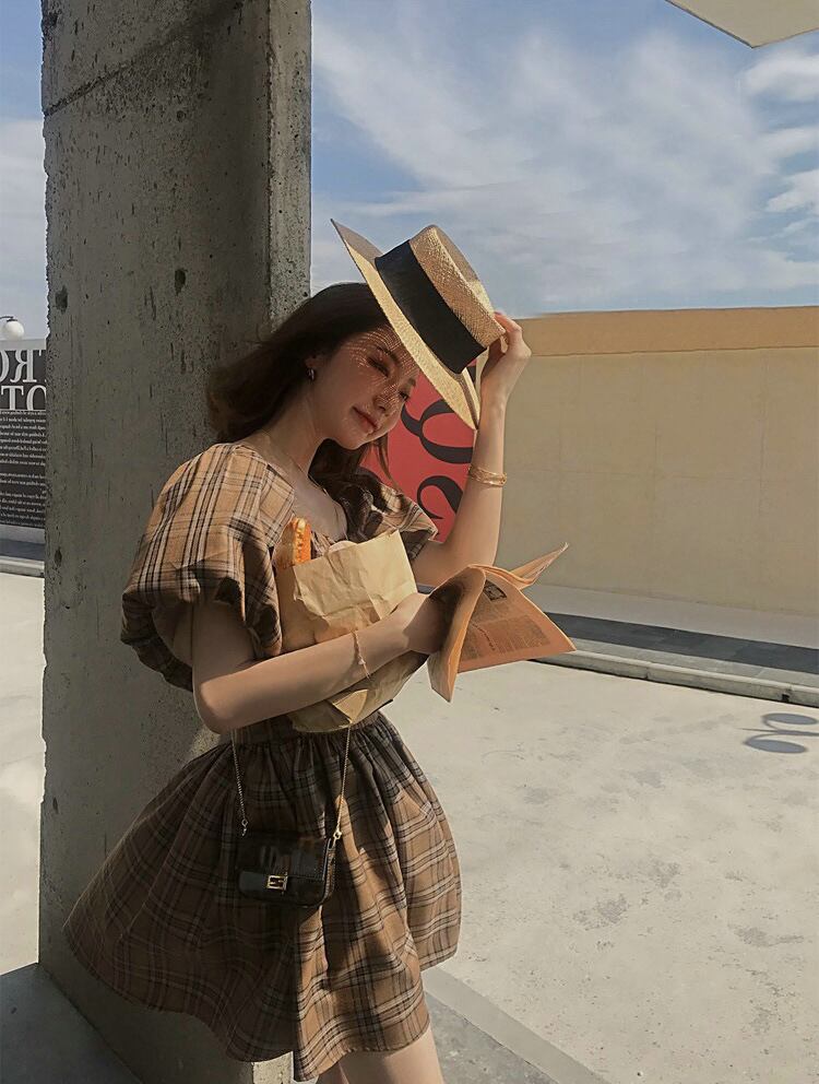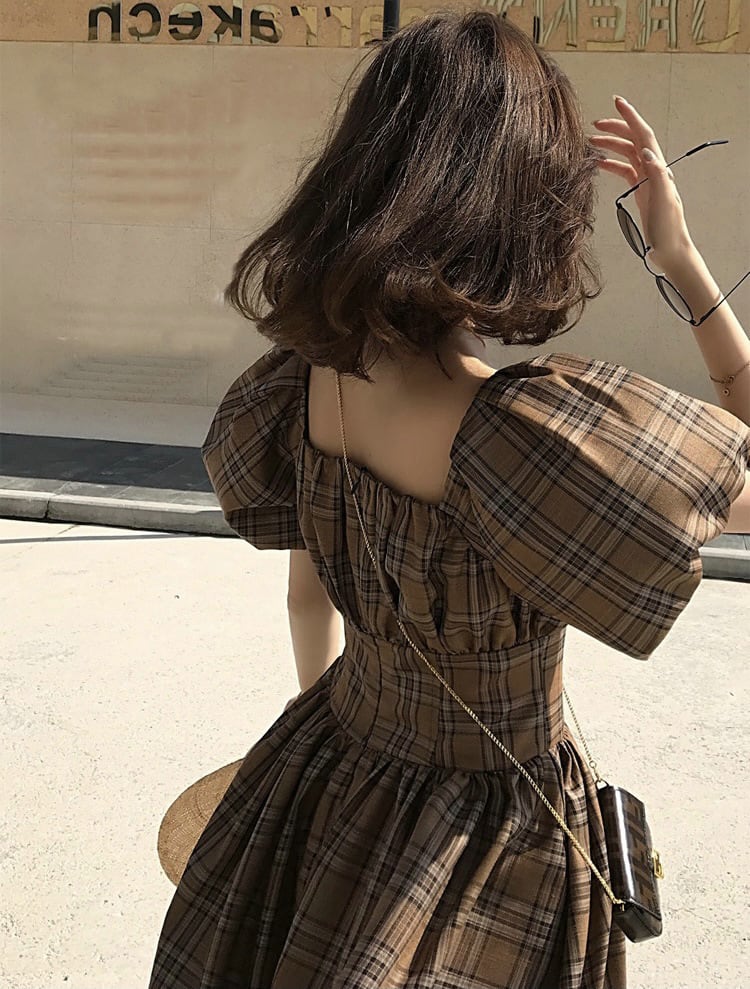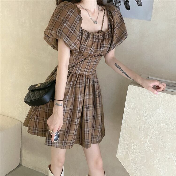 【送料無料】ワンピース ショート ショート丈 袖あり 膝上 ミニ 半袖 ギャザー パフスリーブ チェック ネック バルーンスリーブ ハイウエスト かわいい 大人可愛い きれいめ シンプル カジュアル 大人 上品 おしゃれ お洒落 こなれ感 キュート 主役級 存在感 無地 夏 10代 20代 レディース 女性用 女の子 学生 通学 お出かけ 休日 着回し 普段使い 韓国 韓国系 ファッション コーデ モテ トレンド 流行 インスタ映え プチプラ S M L ブルー ネイビー ベージュ
