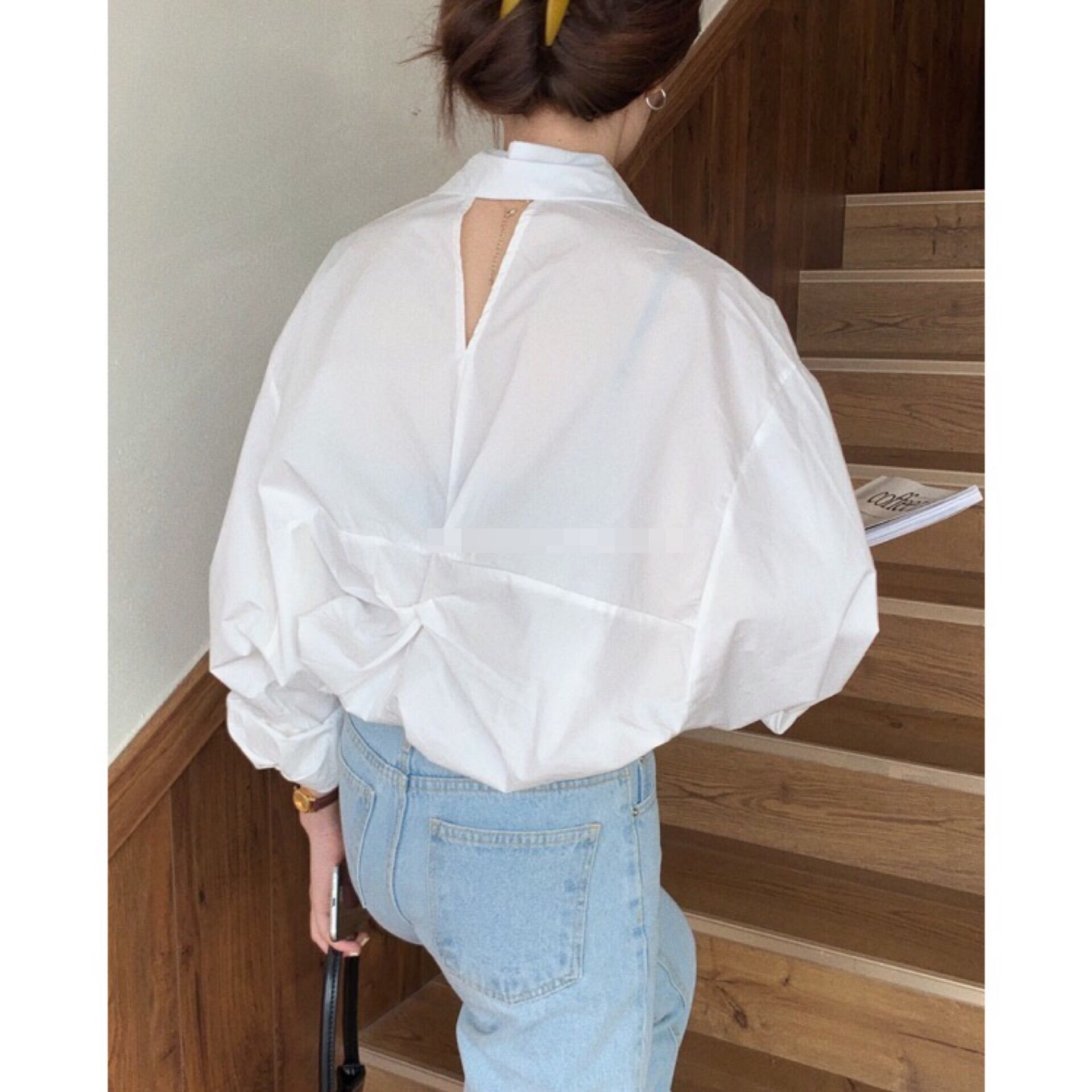 【送料無料】トップス ブラウス バックオープン バックコンシャス ノット 絞り 袖あり 長袖 パフスリーブ ドロップショルダー 細身 切り替えデザイン バックシャンかわいい 大人可愛い きれいめ シンプル カジュアル 大人 上品 おしゃれ お洒落 大人女子 ラブリー キュート ガーリー 存在感 主役級 無地 春 秋 10代 20代 レディース 通勤 学生 通学 デート お出かけ 女子会 休日 着回し 普段使い 重ね着 韓国 オルチャン フリーサイズ 白 ホワイト